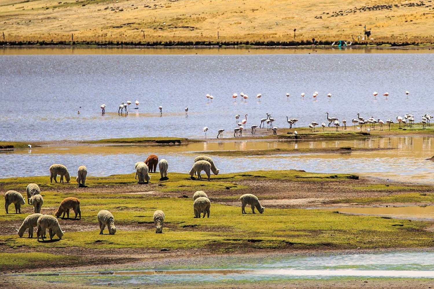 På vej til Puno vil vi igen kunne nyde udsigten, som den høje Andesregion tilbyder os, vi vil aflægge et kort besøg ved udsigtspunktet 'Cordillera Volcanica', hvis du ønsker at nyde en drink eller en snack i 'Patahuasi', kan du gøre det, og endelig vil vi gøre vores sidste stop i 'Lagunillas', en sektor i Puno, så du kan observere og fotografere fugle og sydamerikanske kameldyr.