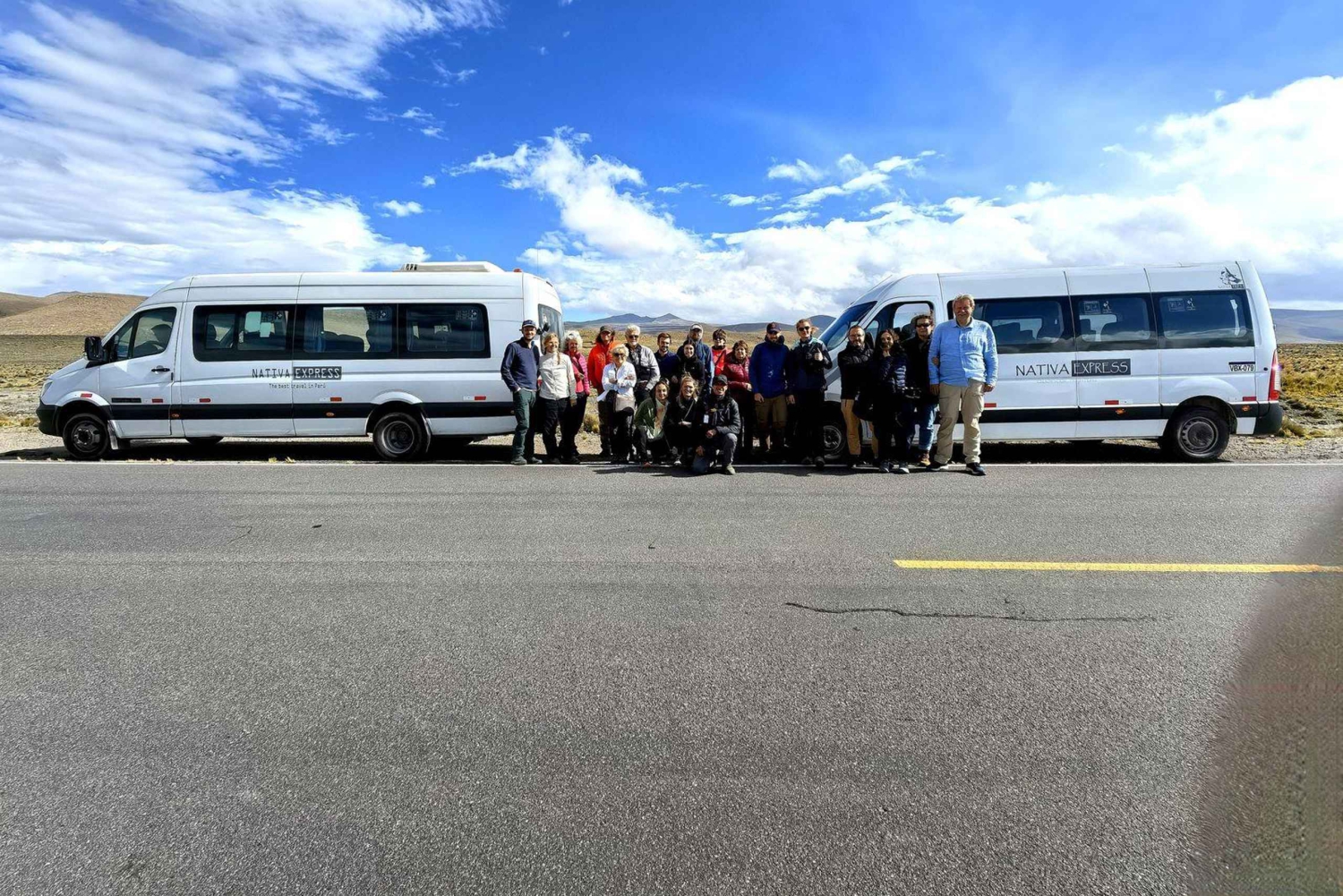 I bliver hentet på jeres hoteller mellem kl. 3.00 og 3.30, og så kører vi mod byen Chivay. Efter 3 timers kørsel gør vi det første stop ved Mirador de los Volcanes, som er turens højeste punkt (4910 m.o.h.), og her kan vi se vulkanerne Ampato, Sabancaya og Hualca Hualca Hualca. Derefter vender vi tilbage til køretøjet for at fortsætte rejsen til det sted, hvor vi skal spise morgenmad.