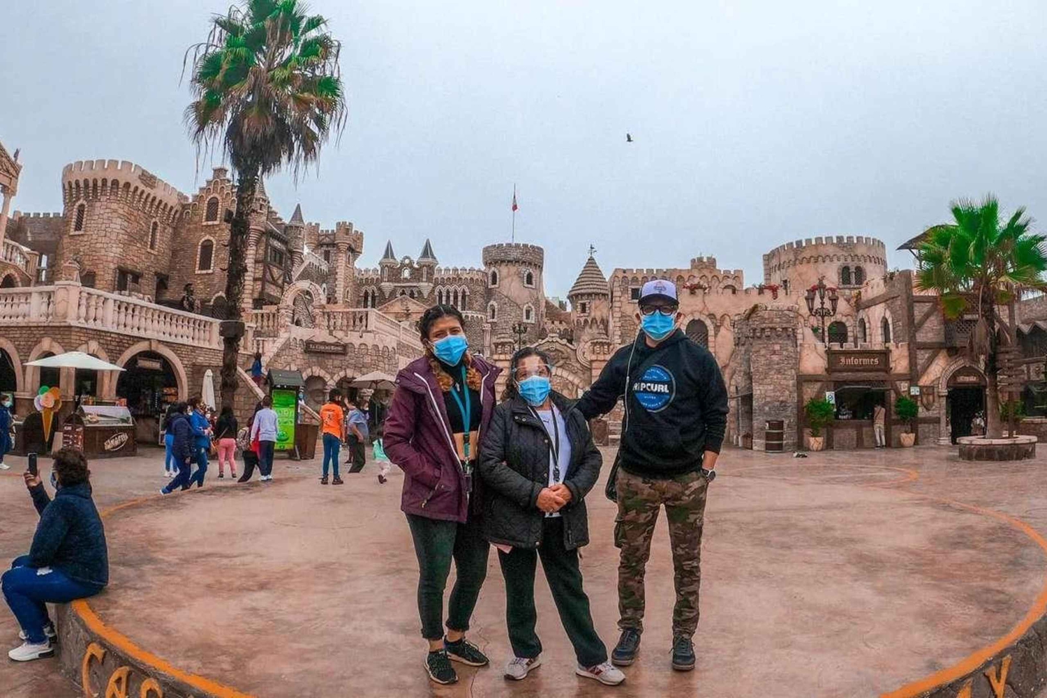 Vi fortsætter turen til Chancay, hvor vi ser det nøjagtige sted, hvor skibet Covadonga sank under Stillehavskrigen. Derefter går vi ind på slottet i Chancay, et palads fra midten af det 20. århundrede, der er omdannet til en forlystelsespark.