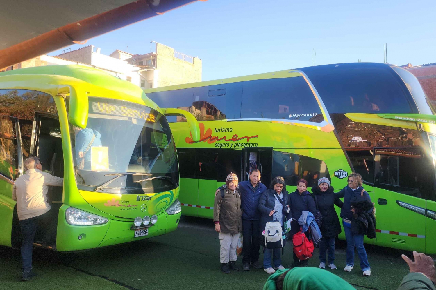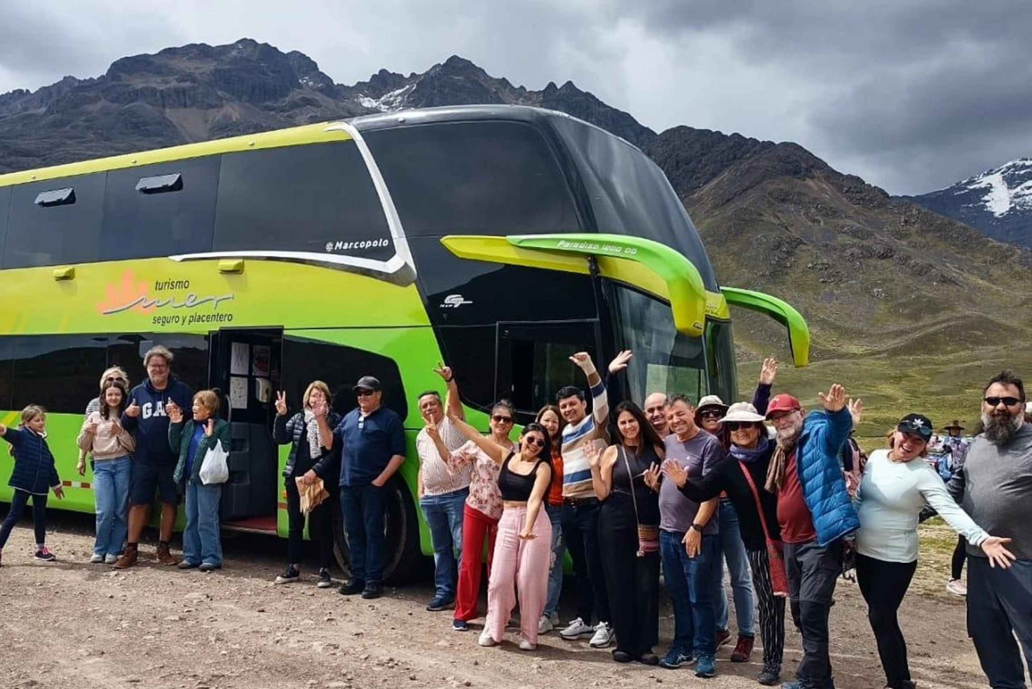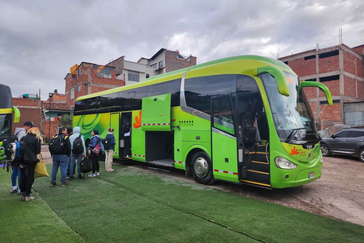 Touristische Beförderung von Cusco nach Puno, Abfahrt um 07:00 Uhr morgens und Ankunft um 17:30 Uhr in Puno, Besichtigung von Sehenswürdigkeiten, einschließlich eines Mittagsbuffets und eines Snacks an Bord.
