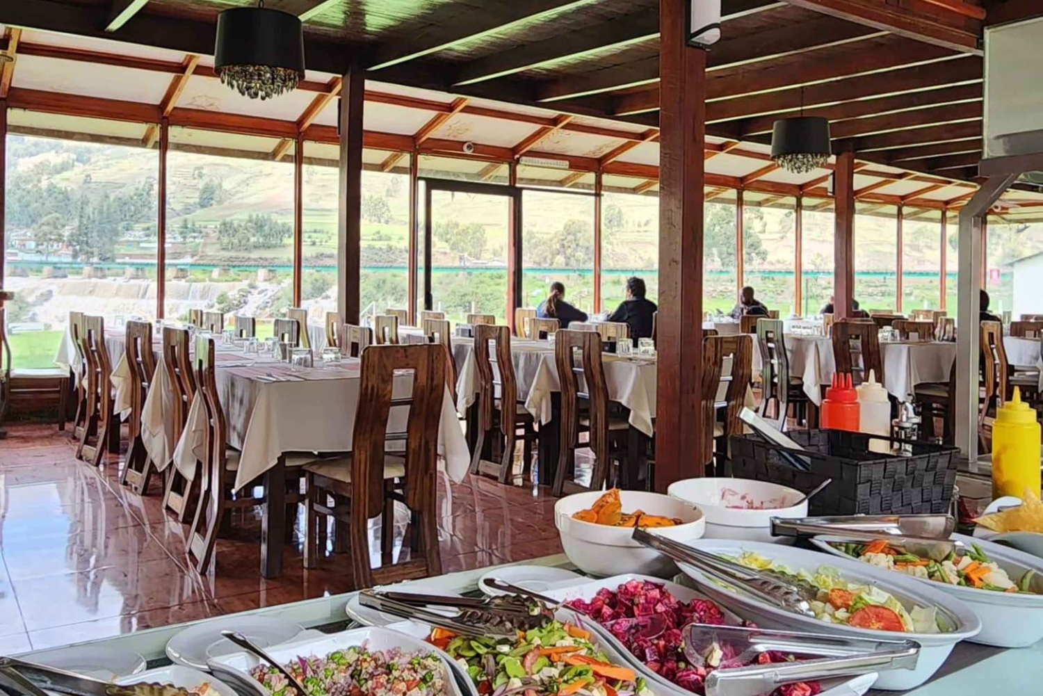 >>>Um 12 Uhr gibt es ein im Ticketpreis inbegriffenes Mittagsbuffet im Touristenrestaurant LA PASCANA, das ein hohes Ansehen genießt und für die gute Küche der Köche bekannt ist. Es ist strategisch günstig am Rande der Stadt Sicuani gelegen. Das Buffet besteht aus einer großen Auswahl an nationalen und regionalen Gerichten, Vorspeisen, frischem Gemüse, Beilagen, den leckersten Desserts und Heißgetränken (Maté de Coca, Kaffee oder Tee), die im Ticketpreis enthalten sind.