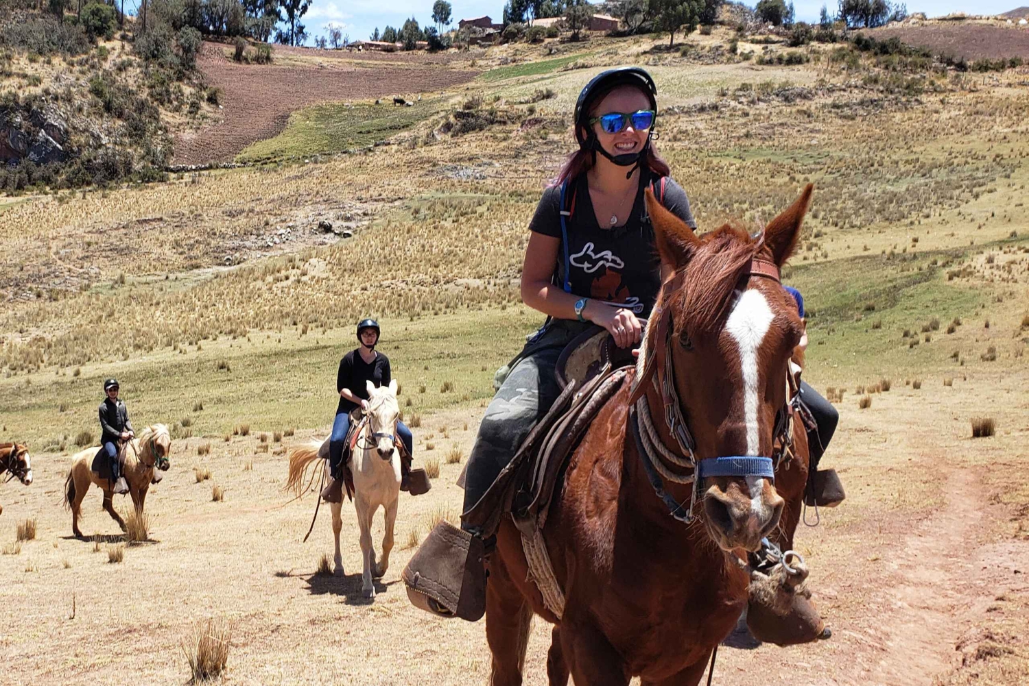 Reite auf einem Pferd zum beeindruckenden Mondtempel in der Nähe der Berge der Stadt Cusco. Bewundere die unglaubliche Aussicht auf die Stadt, während du reitest und den Tempel mit deinem erfahrenen Führer erkundest.