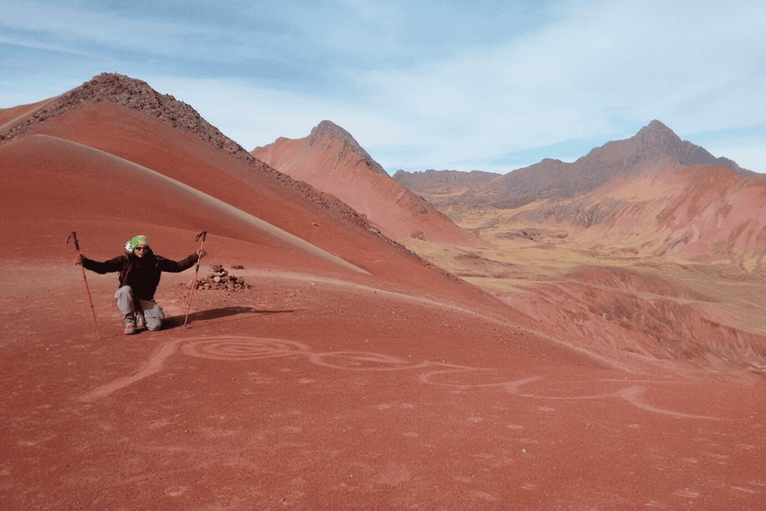 Auf dem Gipfel (5.010 m ü. d. M.) angekommen, hast du Zeit zur freien Verfügung, um dich auszuruhen, Fotos zu machen und den Panoramablick auf den Berg der 7 Farben und die umliegenden schneebedeckten Gipfel zu genießen. Wenn das Wetter es zulässt, kannst du auch den Ausangate, den heiligen Berg von Cusco, sehen.