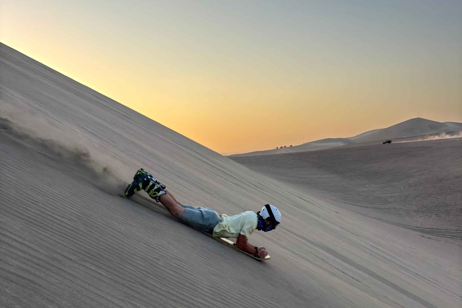 - Für das Skifahren ist ein mittleres oder fortgeschrittenes Niveau erforderlich. Sandboarden ist für alle zugänglich, keine Erfahrung erforderlich. Die Bodyboard-Option ist auch möglich, wenn du nicht bereit bist, Ski oder Sandboard auszuprobieren.