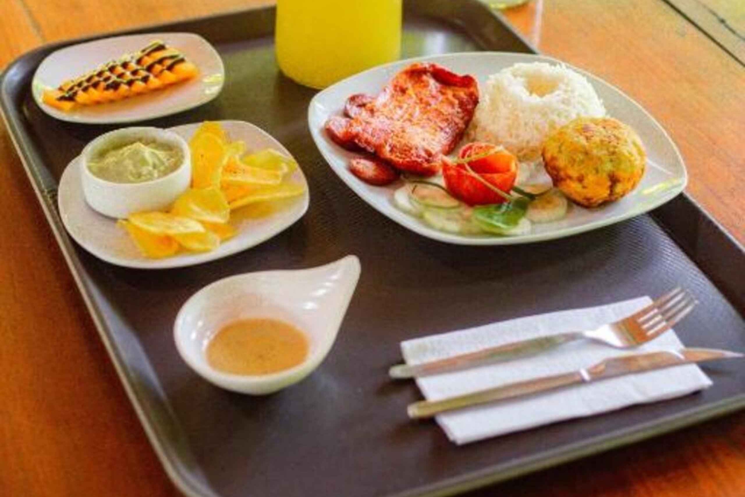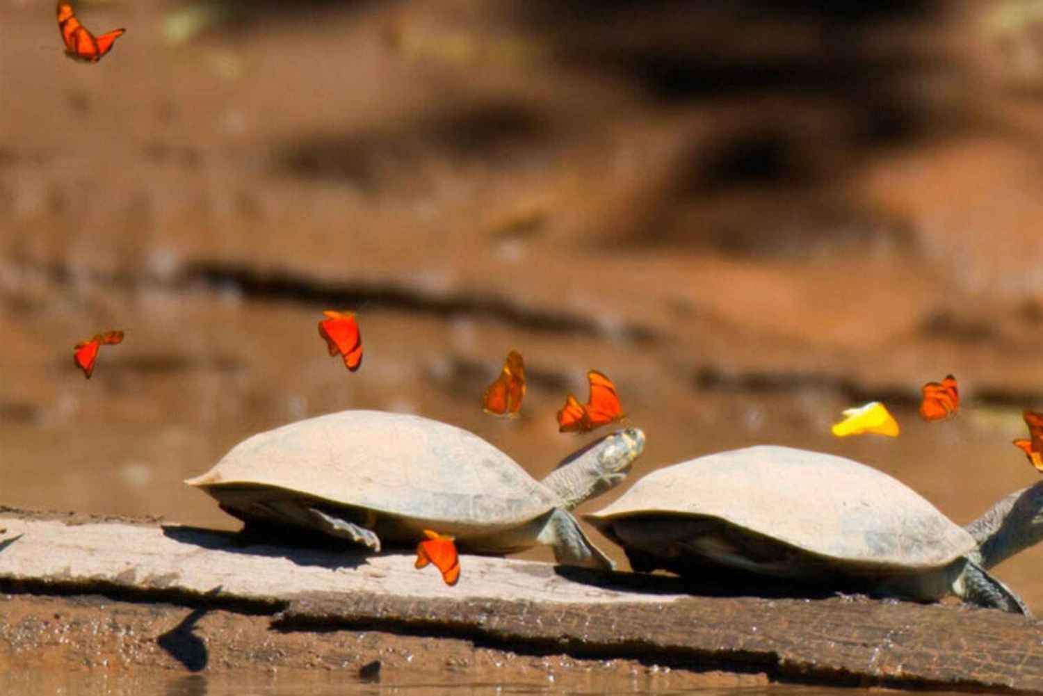 Wir holen Sie am Landterminal ab und bringen Sie zu unserem gemütlichen Hostel, wo Sie ein erfrischender Empfang mit saisonalen Fruchtgetränken erwartet. Machen Sie es sich in Ihrem Bungalow gemütlich und bereiten Sie sich auf einen Einführungsspaziergang durch den Dschungel vor, bei dem Sie die Vielfalt der Pflanzen, Insekten und Vögel unseres Naturschutzwaldes entdecken werden. Und für die Abenteuerlustigeren erwartet Sie eine aufregende Hängebrücke (Seilrutsche)! Am Nachmittag machen wir eine Flusskreuzfahrt auf der Suche nach wilden Tieren und beobachten den wunderschönen Sonnenuntergang. In der Abenddämmerung halten wir Ausschau nach Kaimanen und Wasserschweinen.