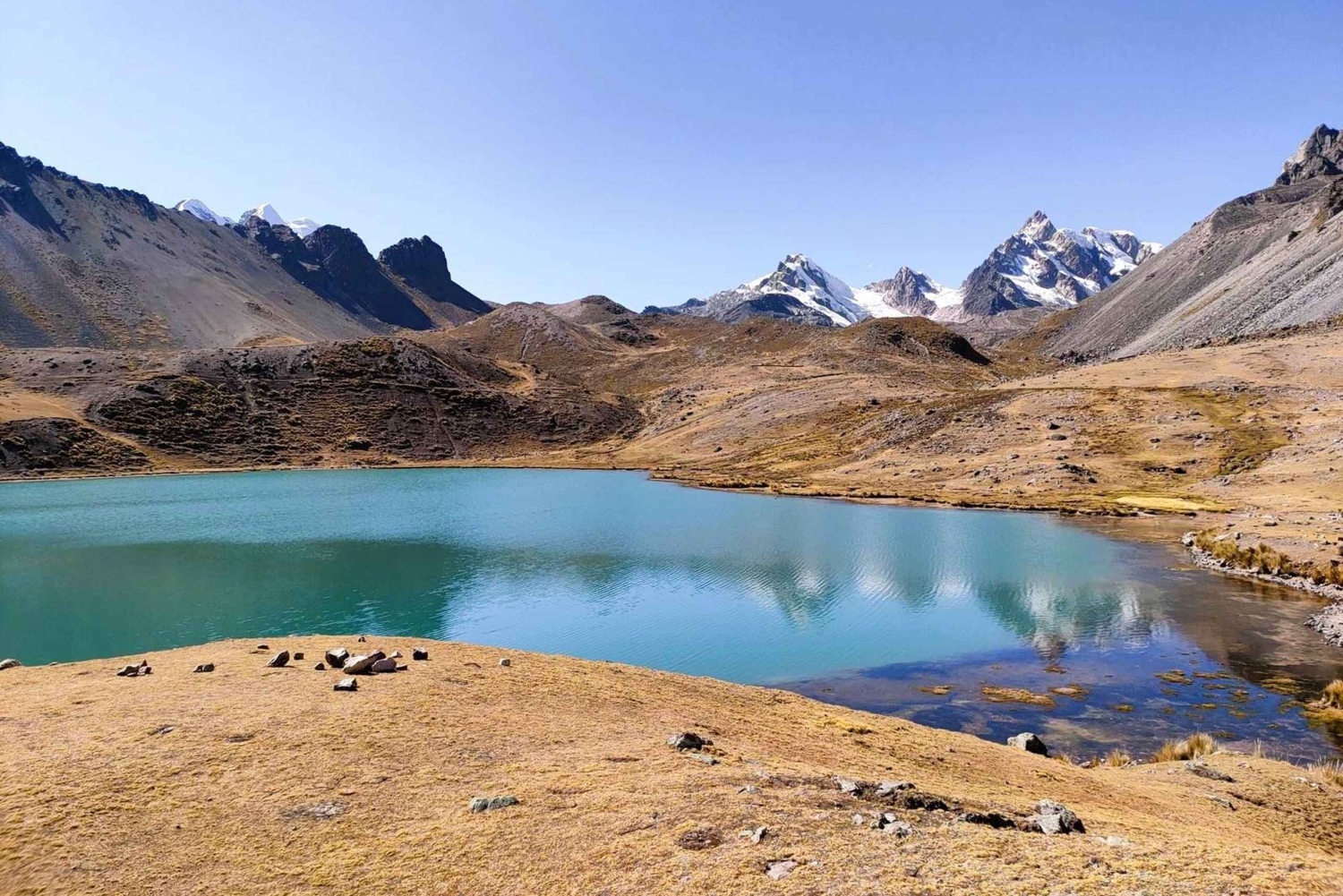 Der Wanderweg bietet an jeder Ecke unglaubliche Fotomotive und dein Guide erzählt dir alte Geschichten darüber, wie diese Seen mit den Apus und dem natürlichen Gleichgewicht der Anden verbunden sind. Steige sanft hinauf zum Aussichtspunkt Ninaparayoc, einem der malerischsten und weniger besuchten Orte der Region. Von diesem versteckten Ort aus genießt du einen 360°-Panorama-Ausblick auf alle Lagunen, die unter dir glitzern – umgeben von Gletschern, bunten Tälern und dem majestätischen Ausangate, der sich über dir erhebt. Dies ist ein perfekter Moment, um dich auszuruhen, zu meditieren oder einfach die Stille und Energie der Berge zu genießen.