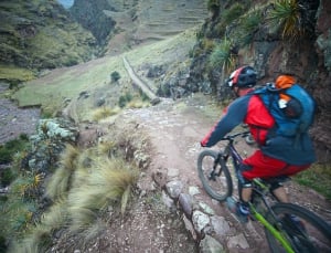 Conocido mundialmente por el nombre de bicicleta de montaña, es el deporte de aventura de más rápido crecimiento en el país. Sus miles de adeptos viajan hoy en día con sus bicicletas ligeras, ya que existen muchos caminos de herradura y rotos a lo largo de nuestra geografía. Casi cualquier rincón del territorio peruano, con excepción del desierto costero y la llanura amazónica, es apto para el ciclismo de montaña. Sin embargo, dependiendo de su dificultad y requerimientos logísticos, los circuitos pueden ser agrupados en tres grandes categorías: A) considerado apto para principiantes, incluye rutas de pendiente suave y terreno duro y compacto; B) para ciclistas con cierta experiencia, incluye circuitos que se desarrollan sobre zonas de pendiente moderada y conllevan un nivel de riesgo para quienes los practican; y, C) reservado para expertos, caracterizado por un terreno muy empinado y suelos extremadamente "blandos o de consistencia blanda (conlleva un alto nivel de riesgo y a menudo implica grandes altitudes). Viaje a través del Perú ... a todo pedal.