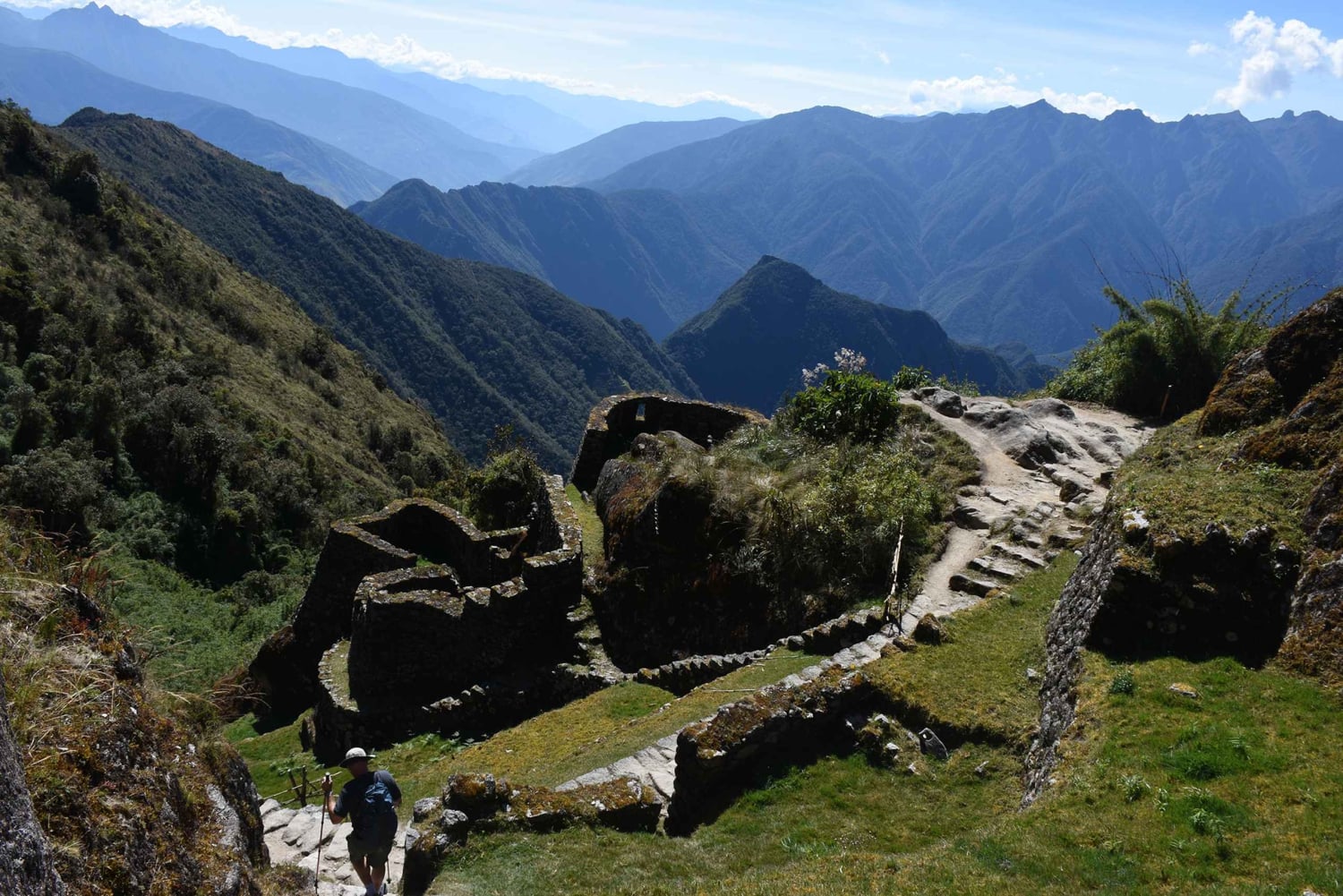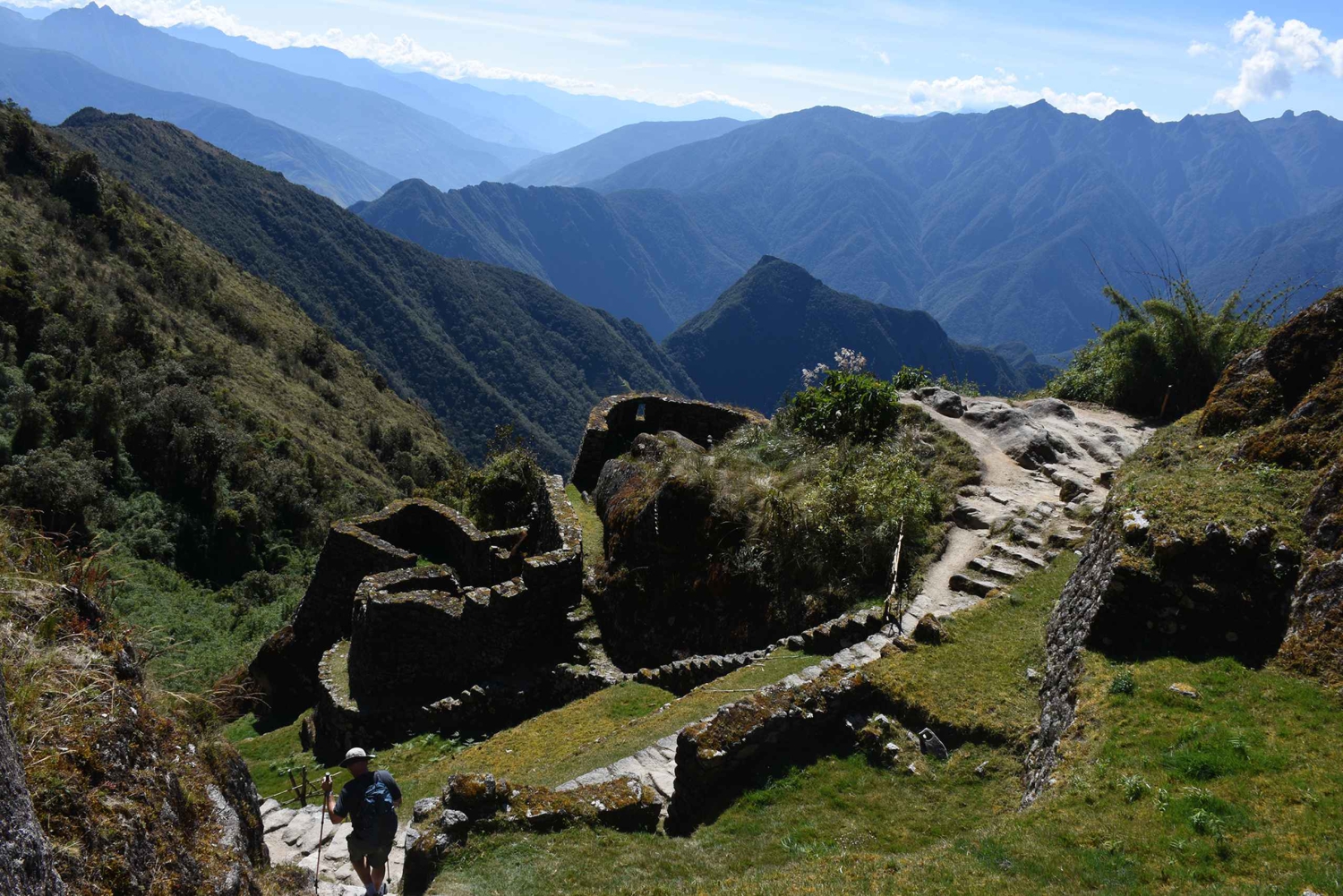 Hoy se asciende de nuevo a un segundo paso, aproximadamente a mitad de camino se encuentra una ruina inca de Runkuraqay, tras un breve recorrido, se continúa subiendo por el paso. Desde aquí el grupo desciende por el Camino Inca original, pasando por un pequeño lago y los primeros indicios del bosque nuboso. Poco después llegarás a un segundo yacimiento inca más grande llamado Sayacmarca, un hermoso lugar con vistas al valle de Aobamba. Después de recorrerlo, continuarás por la cresta a través de paisajes asombrosos, contemplando el monte Salkantay desde el lado occidental y el monte Pumasillo, una silueta al norte en el horizonte, tu parada para almorzar. Tras el almuerzo, seguirás caminando por un sendero ondulado de piedras con banderas y un túnel antes de llegar a otro yacimiento inca llamado Phuyupatamarca 'el pueblo al borde de las nubes'. Desde aquí, el camino empedrado desciende bruscamente por el bosque nuboso hasta las ruinas de Wiñay Wayna 'Siempre Joven', unas ruinas incas bien restauradas. Aquí acamparemos para pasar la noche.