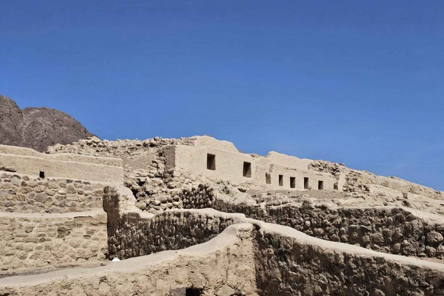 Después del vuelo, haremos una parada para almorzar en un restaurante local en la ciudad de Nazca (almuerzo no incluido), donde podrás disfrutar de la gastronomía regional. Luego, comenzaremos el tour arqueológico terrestre con la visita a los acueductos de Cantalloc, un sistema hidráulico preincaico aún en funcionamiento. Continuaremos hacia Cahuachi, la gran ciudad ceremonial de adobe, y las ruinas de Los Paredones, centro administrativo incaico de la zona.