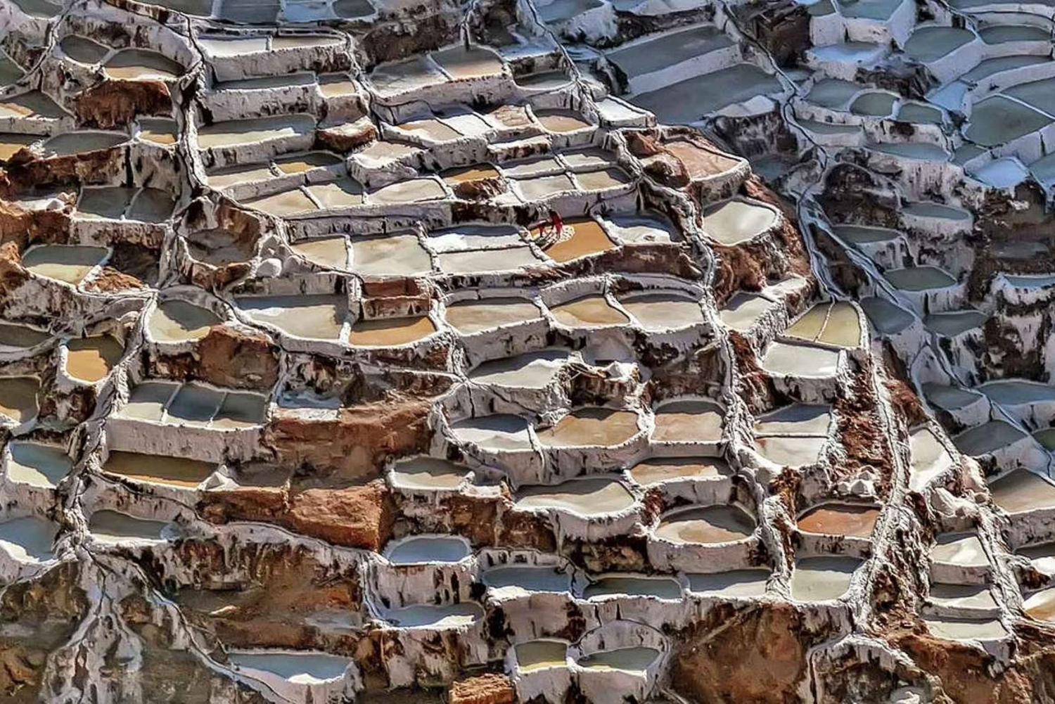 Luego nos dirigiremos a las salineras de Maras donde podremos apreciar las pozas de sal. También tendremos una visita guiada y podremos comprar productos hechos a base de sal. Este lugar cuenta con 2000 pozos de sal, actualmente los pozos de sal son explotados por familias locales.