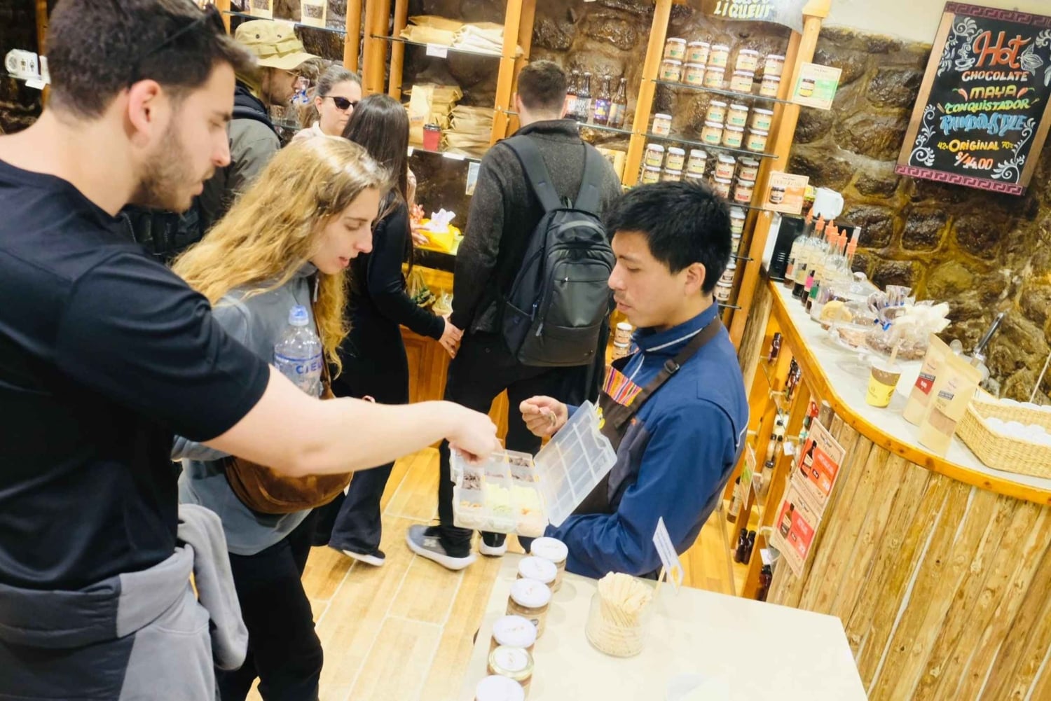 At Plazoleta Nazarenas, surrounded by elegant colonial buildings, you’ll hear stories about Cusco’s noble past. Visit the Palace of Inka Roca and marvel at the famous 12-Angle Stone on Hatun Rumiyoc Street, where you’ll also enjoy a delicious stop at the ChocoMuseo to taste locally made Peruvian chocolate.