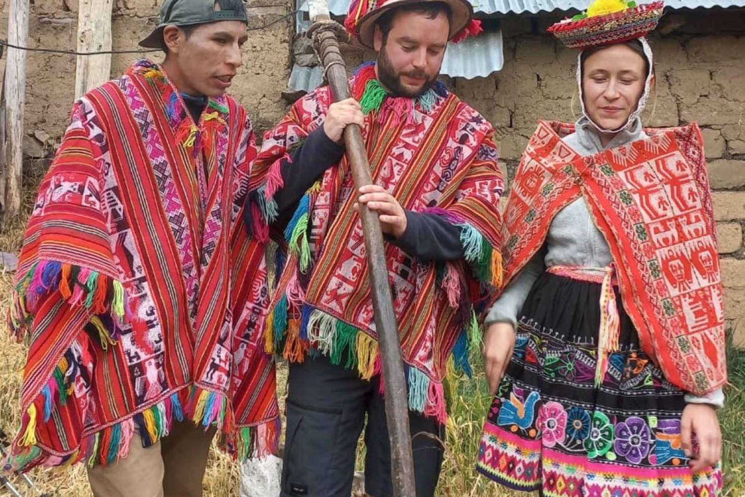 Comenzaremos el día desayunando, luego iniciaremos una caminata de 3 horas cuesta arriba hasta el punto más alto, el Paso Pachacutec (4600m), disfrutando de hermosos paisajes y caminando rodeados de muchas llamas y alpacas. Luego, es un descenso de 2 horas desde la cima de la montaña hasta el valle donde disfrutará de un almuerzo de pachamanca y presenciará cómo se prepara la pachamanca. Después del almuerzo, continuaremos descendiendo dos horas más cuesta abajo hasta nuestro campamento Quishuarani donde la gente todavía practica las tradiciones incas y al llegar al campamento podrá visitar a las familias locales y aprender más sobre sus costumbres y tradiciones.