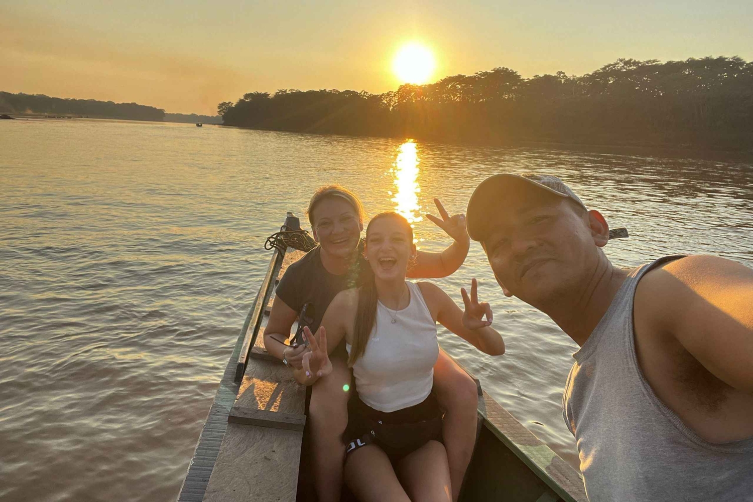After lunch we will sail along the Tambopata River where we will see a great sunset and at dusk we will go down with the engine off in search of caimans and capybaras known as the largest rodents in the world and some other species in their wild habitat.
