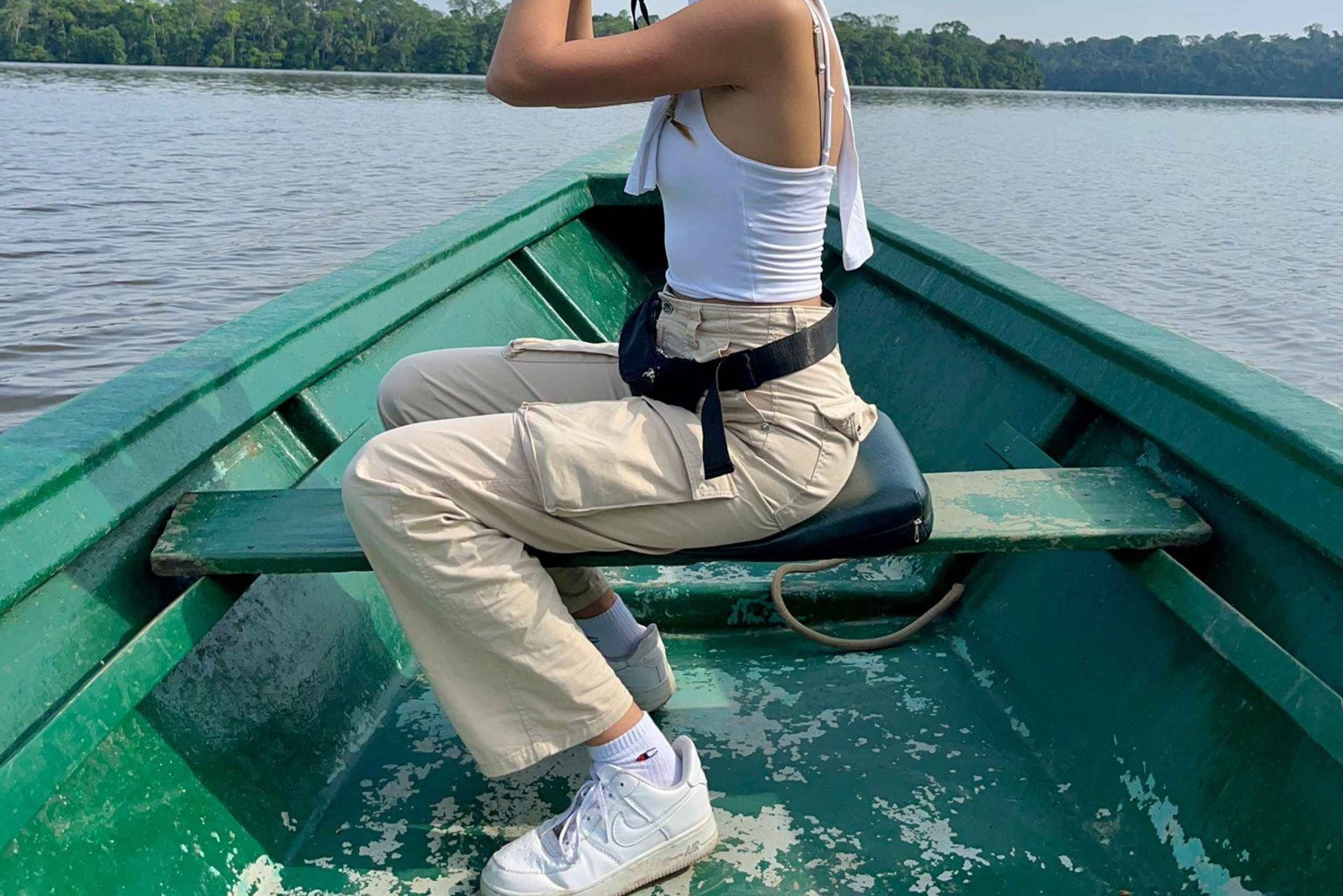 Upon arriving at Lake Sandoval, we will begin our adventure in a rustic boat, we will row in this lake, this lake has an area of more than 3 km, we will be able to observe a lot of wildlife such as herons, monkeys, parrots and macaws, black caimans, piranhas and the river otter, giant specimens measuring just over two meters, which are in danger of extinction.