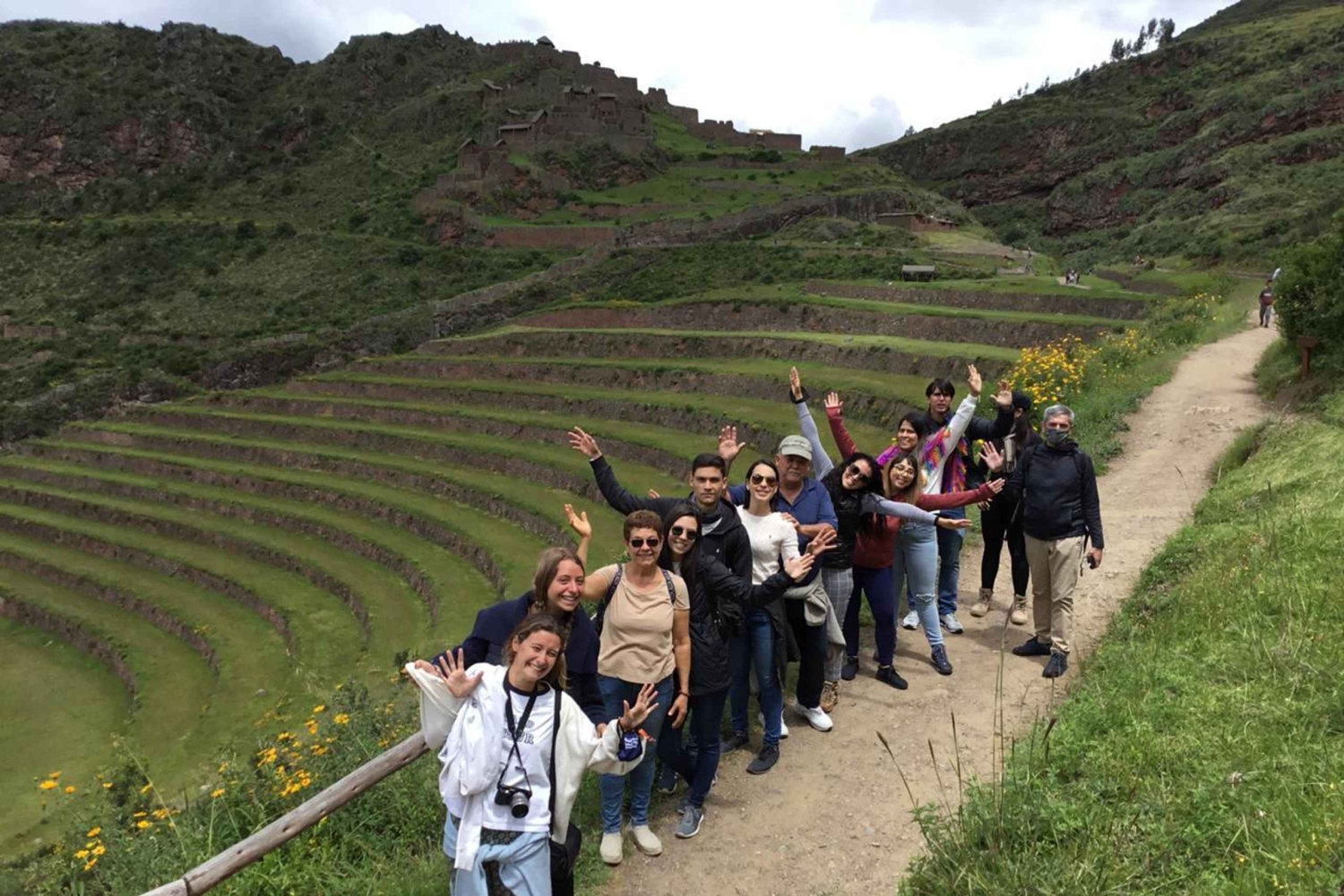 The tour will begin with the pick up from your hotel between 6:35 a.m. and 6:55 a.m., with our tourist transport we will go to the Sacred Valley since the first point to visit will be chincheros, where the remains of the se locates the royal hacienda of Túpac. Inca Yupanqui is located. you will admire its well-preserved Inca wall in the main square. We will continue to Moray, a circular Inca construction dedicated to Inca agriculture, it has floors of different heights that allowed us to sow endless Andean products, we will continue to salt mines, like the same name, here we will see several salt mines. wells, then we will go to Urubamba to have lunch with more than 30 varieties of typical dishes, then we will continue to the archaeological complex of ollantaytambo built to guard the entrance to this part of the valley and protect it from possible invasions by the inhabitants of the jungle. We will have the opportunity to walk through the small streets of the town and thus have a clear idea of what this military, religious and cultural center was like during the Inca Empire. The last point to visit will be Pisaq, this wonderful place. The place is made up of groups of platforms and architectural structures scattered on the slopes and on the top of the mountain. Pisac is one of the most beautiful monumental centers in the valley because it combines the landscape with the impeccable finish of its buildings.
