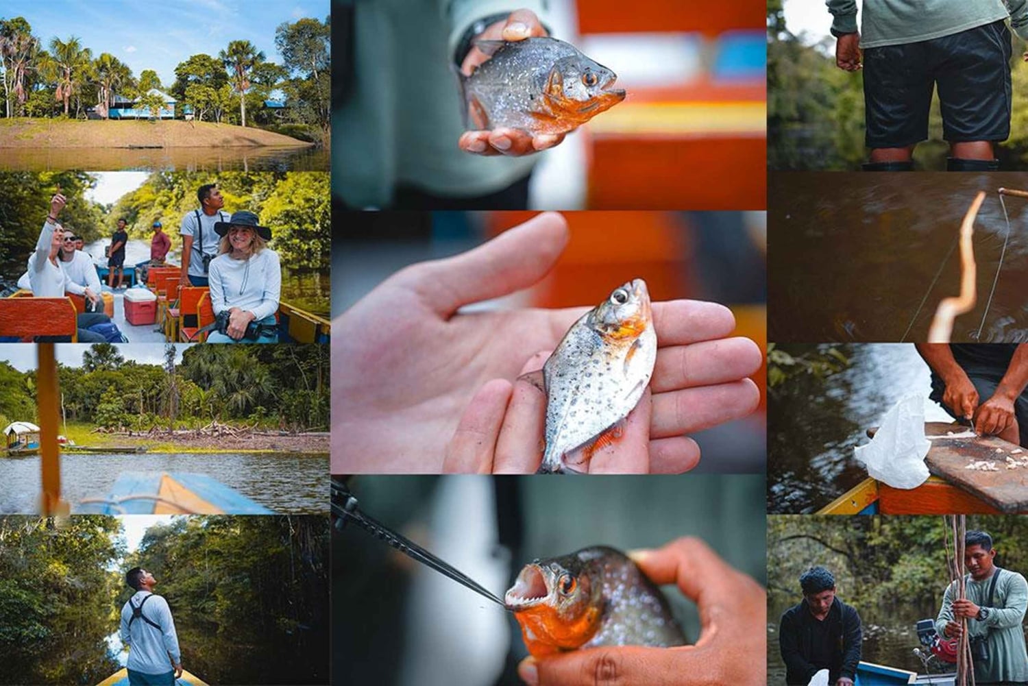 Day 2Get up early to watch the sunrise. Spot herons, eagles, parakeets, and exotic birds. Then, return to the lodge for breakfast and free time. After lunch, fish for piranhas and more. Enjoy the sunset, followed by dinner and traditional Amazonian tales back at the lodge.