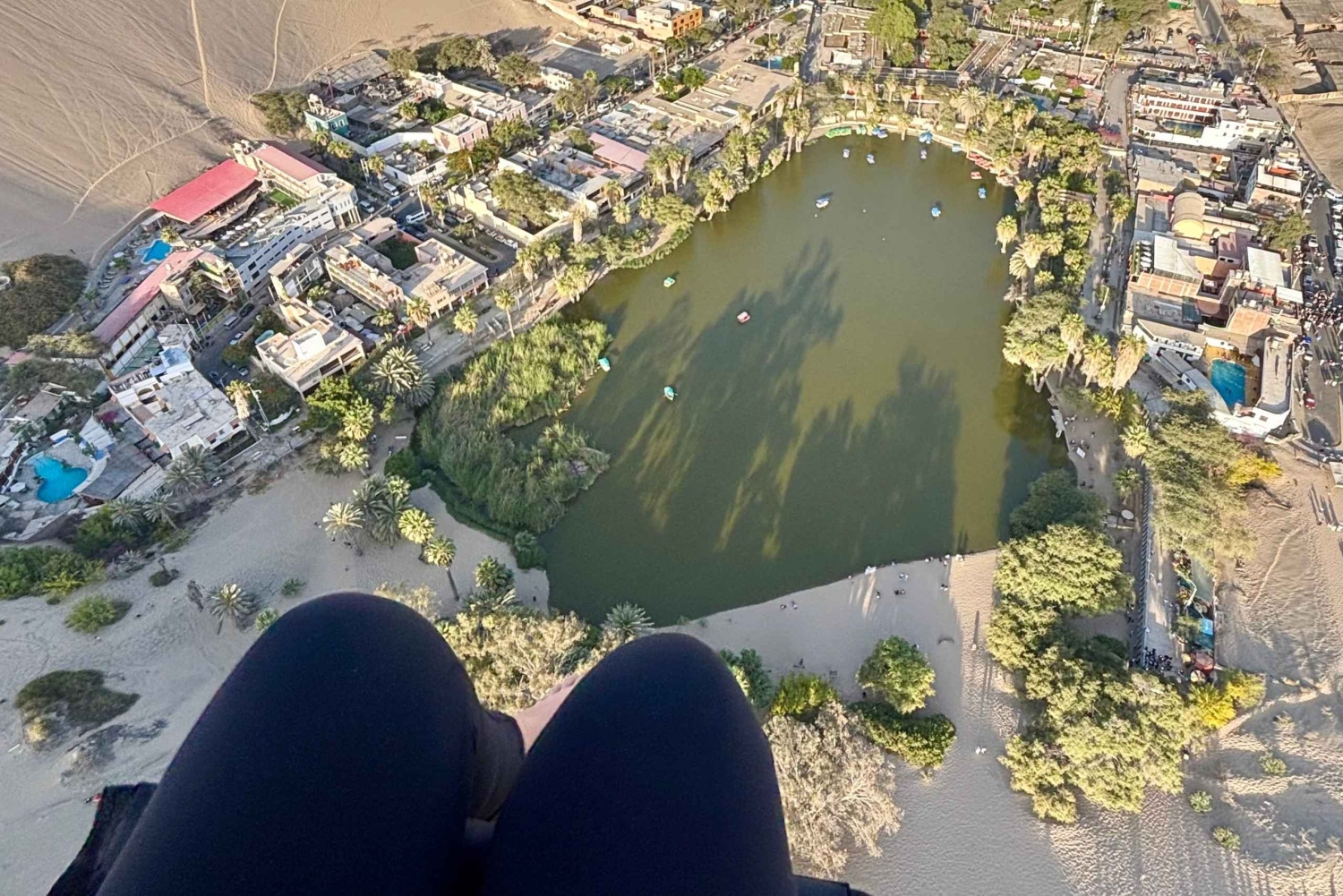 After meeting the pilot at the rendezvous point in Huacachina, you'll walk together (10 min) to the buggy, which will take you to the take-off point, around the Huacachina oasis or in the heart of the desert, depending on the wind conditions.