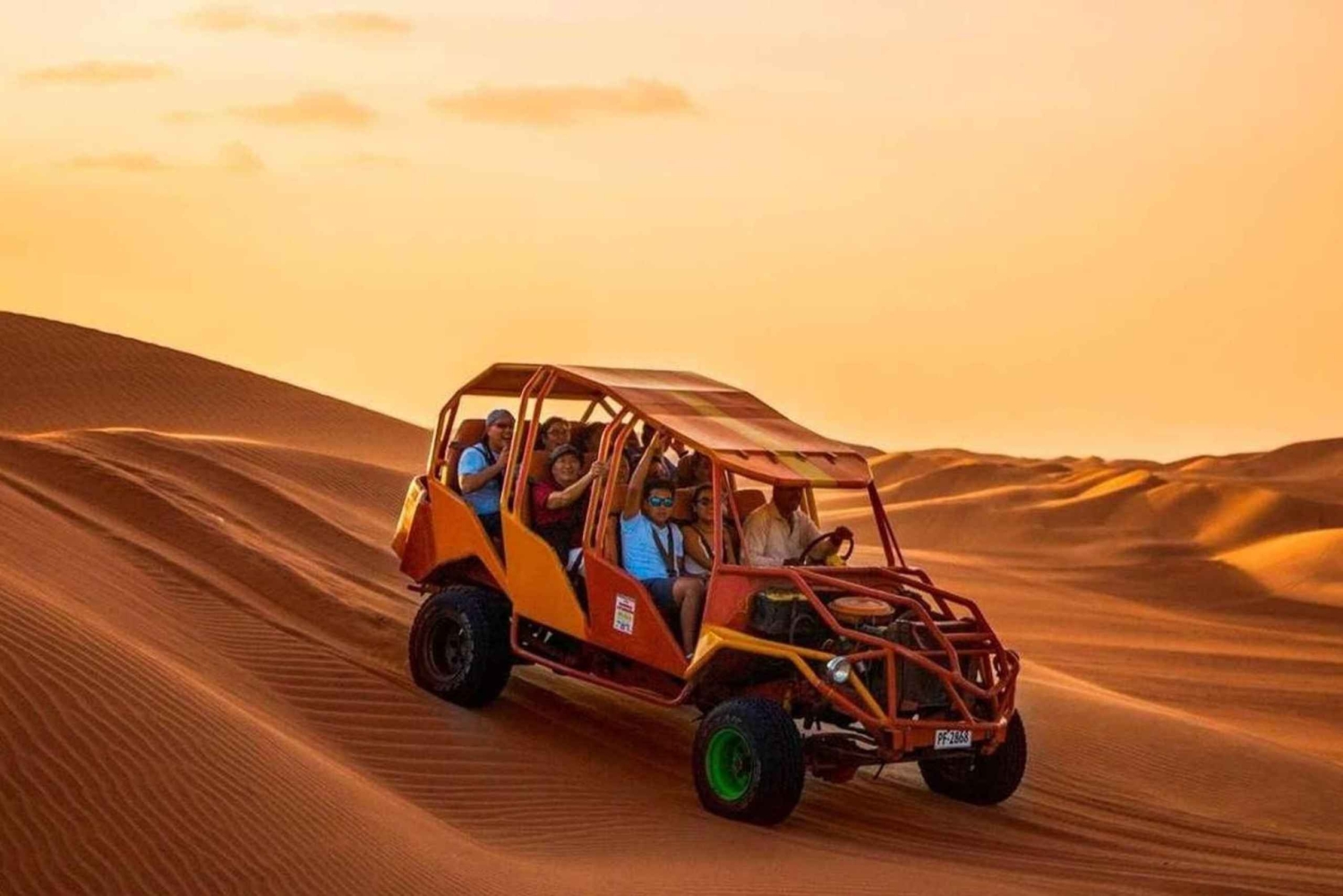 Experience the thrill of riding over the sand dunes in a 4x4 buggy and learn how to sandboard down the dunes with the help of your driver. Enjoy the sunset over the desert.