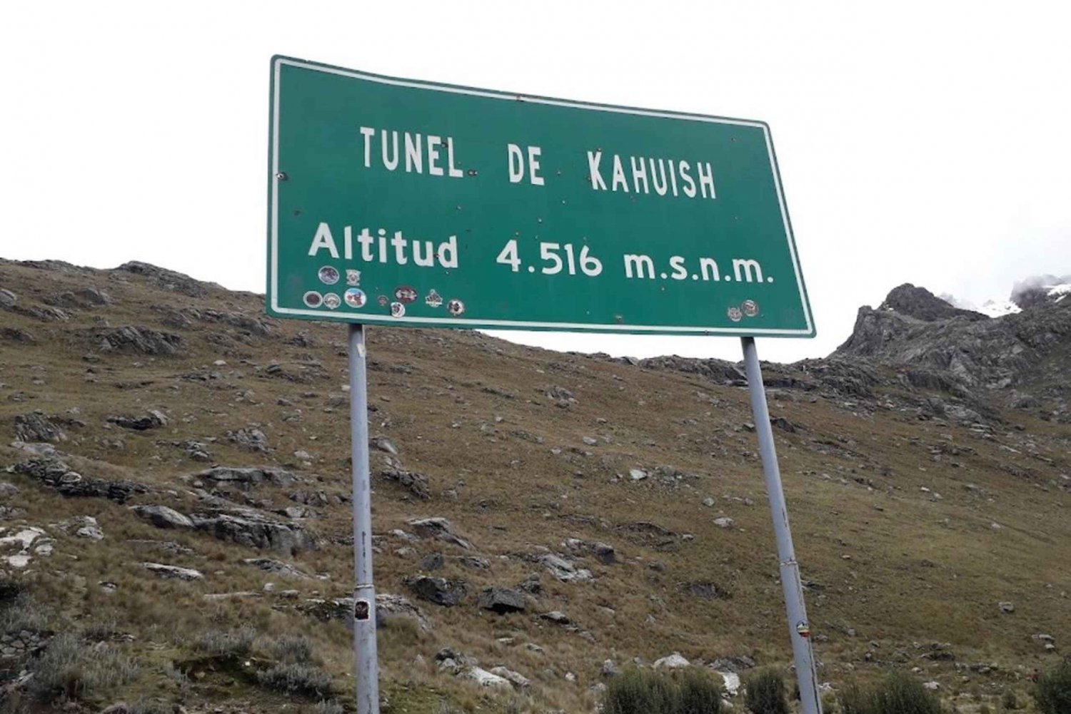 We'll set off from the city of Huaraz through the south of the Callejón de Huailas, passing through the villages of Recuay, Ticapampa, and Catac. We'll visit the Querococha Lagoon, where you can see the Geological Fault of the map of Peru. Then we'll pass through the Cahuish Tunnel, which is at 4550 meters above sea level, and descend through the Conchucos valley until we reach the village of Chavín.