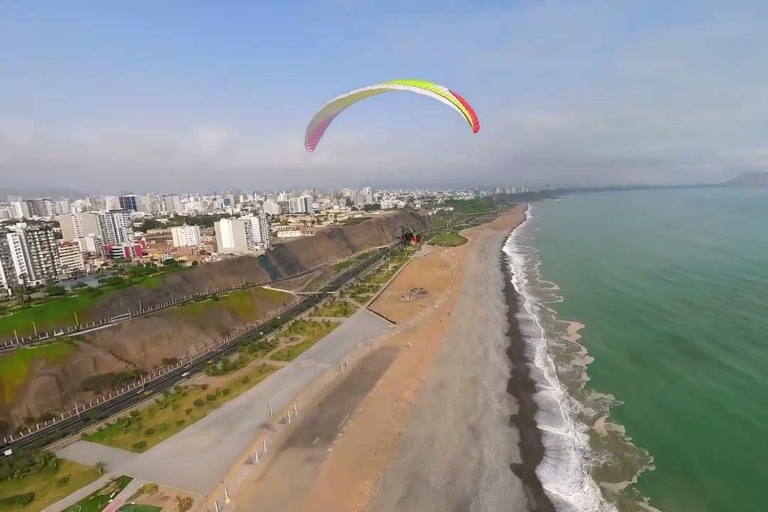 Experience the thrill of a paratrike flight over the cliffs of Costa Verde in Lima. Fly with a professional pilot and enjoy breathtaking views of San Miguel, Magdalena, and Miraflores.