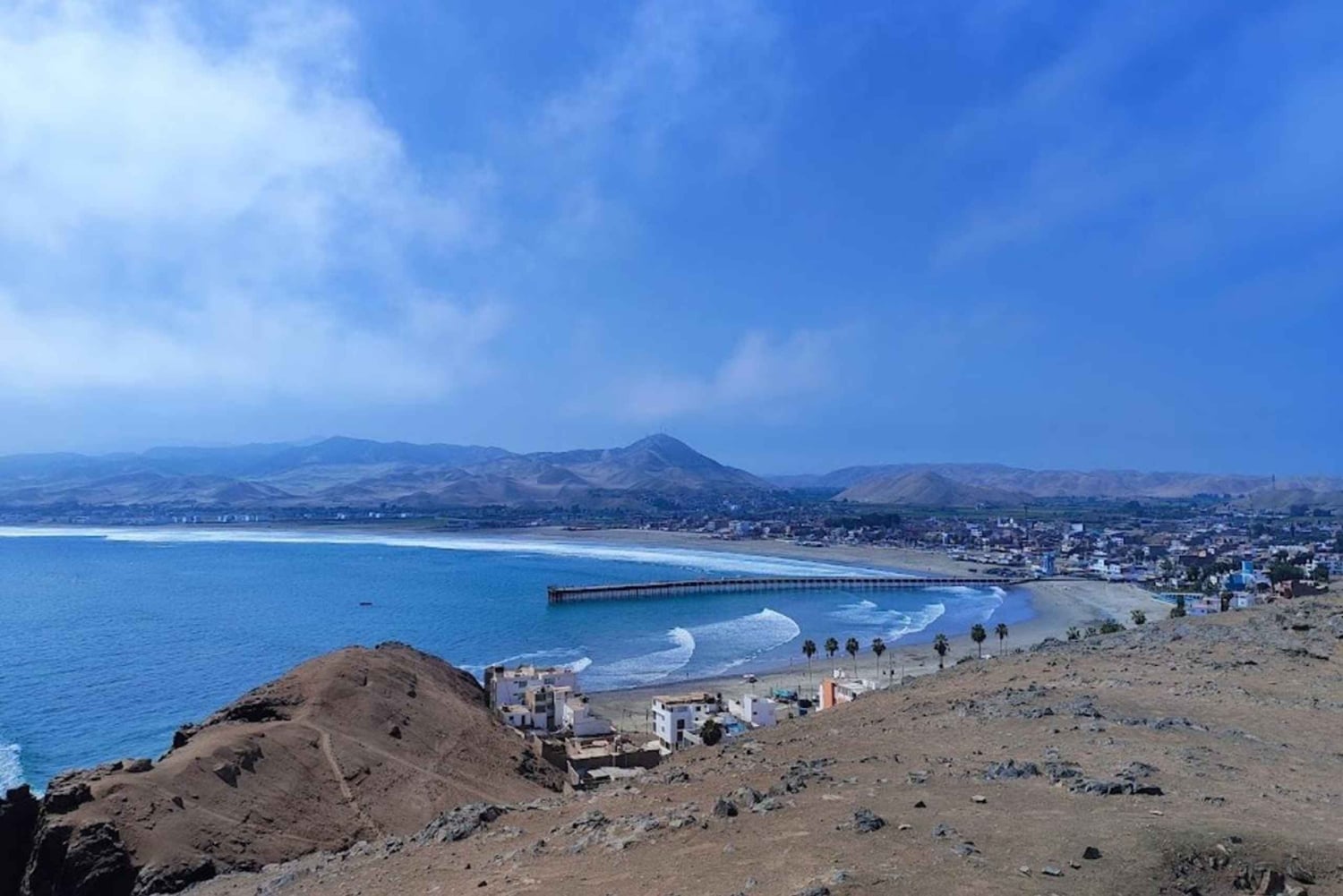 08:00 am CERRO AZUL Y CUATRIMOTO: We visit the tourist pier, which is more than 400 m long. We will enjoy a peculiar sighting of pelicans, guanay, seagulls, birds inhabitants of the area. Time to go ATVing around the beach.