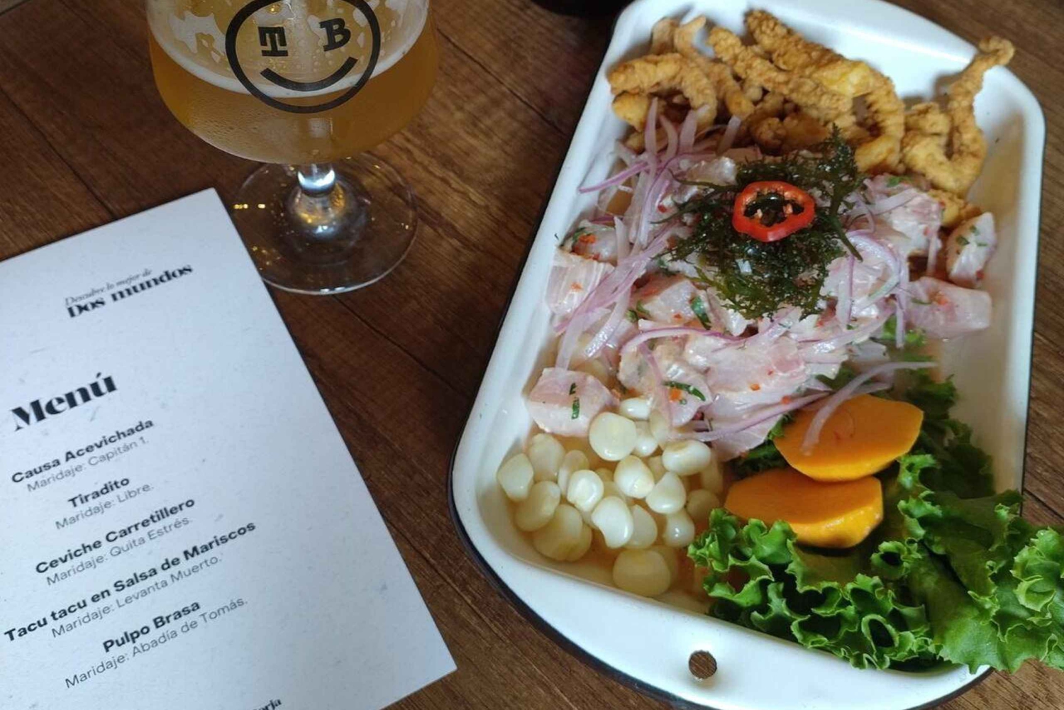 Discover the flavors of Peru with a seafood and craft beers pairing experience in Lima. Enjoy a selection of craft beers paired with classic Peruvian seafood dishes.