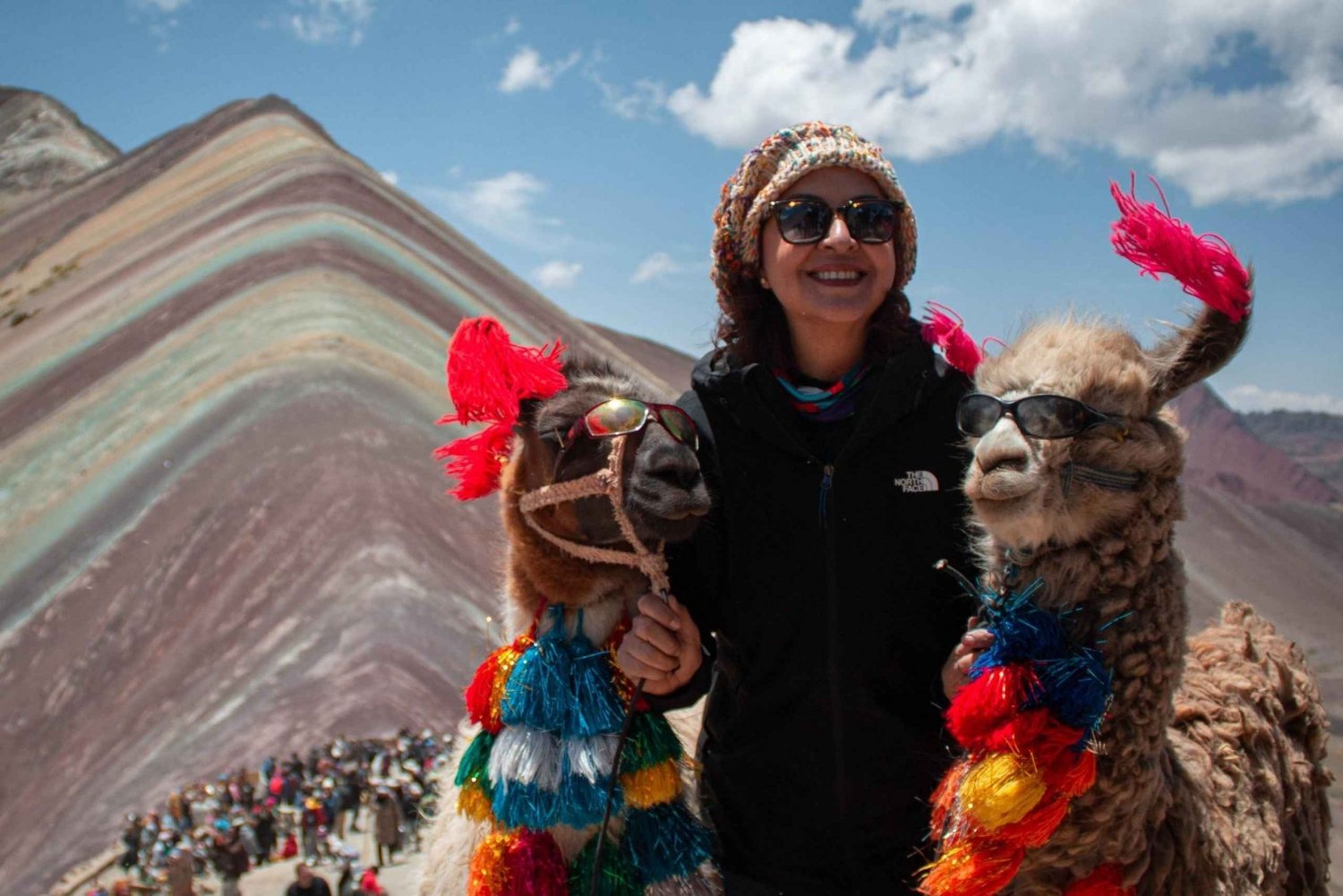 We will wake up early , with pick up from your accommodation at about 04.40 hrs after a trip of 1.30 hrs in our vehicle we will arrive to Cusipata ; here we will have breakfast ; then in our vehicle we continue for 30 minutes in ascent until we arrive to the small village of Chilliwani , we start walking slowly with our guide with the security measures for a time of 1. 30 approx, we will arrive to the point of the Observatory, where we will observe the Mountain of the 7 colors and all the landscape of the Peruvian Andes including the Fauna of the region (Llamas, Alpacas vicuñas) after the reasonable time with our guide we will descend to the location where our vehicle is to descend to Cusipata where we take our lunch, back to Cusco ... in Cusco 17.00 hrs !!!