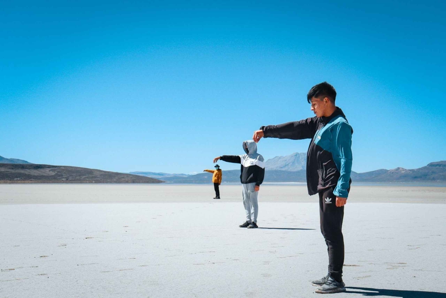 Embark on a full day tour to the Salinas and Aguada Blanca National Reserve from Arequipa. Enjoy a relaxing bath in the Lojen Hot Springs and see the salt flat and water mirrors at the Salinas Lake.