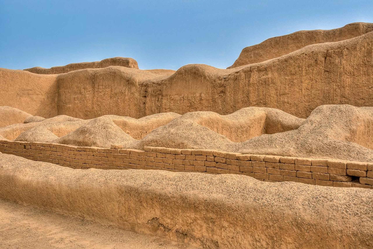 You amazing tour will begin at 08:30am from Salaverry port. You will board our vehicle to drive towards The Sun and Moon Huacas, also known as Huaca del Sol (Temple of the Sun) and Huaca de la Luna (Temple of the Moon), were built during the Moche empire. The temples are huge adobe mounds that were used for various purposes—Huaca de la Luna was used as a religious complex, while Huaca del Sol was an administrative center. The temples were built over centuries in platforms. Every century the Moche sealed the bodies of their dead rulers into the temple and then covered the existing platform with a new platform. Over some 700 years, the temple evolved into a huge stepped pyramid. While here you will also visit the Huacas de Moche Museum, which houses an assortment of artifacts, ceramics, utensils, and tombs. The tour continues on to Huaca Arcos Iris (Rainbow Temple/El Dragon). The Chimú built this temple around A.D. 1200. Explore the temples’ two platforms to get looks at carved adobe panels and niches that were once used to store ritual objects. Local legends describe Huaca Arcos Iris as the home of Takaynamo, the mythical man who is believed to have founded Chan Chan. The tour ends with a visit to Chan Chan. The archeological complex of Chan Chan is the largest pre-Columbian adobe city in America and was declared a UNESCO World Heritage Site in 1986. Chan Chan was the capital of the Chimú empire and was once an elaborate city complete with courtyards, terraces, palaces, and gardens. Between 30,000–60,000 people are thought to have lived here. Needless to say, Chan Chan is a wonderful place to explore.Finally you will return to Salaverry port to re-join your ship.