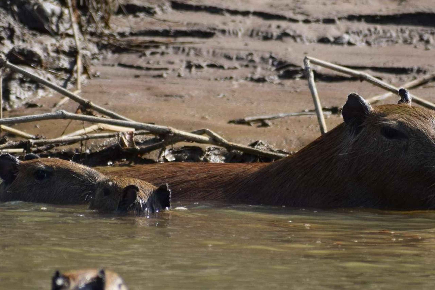 Relax in our comfortable boat seats with panoramic views as we look for sloths and tropical birds. We’ll use our flashlights to search for capybaras, white caimans, and herons along the riverbanks, with a 90% chance of spotting capybaras, the world's largest rodent.