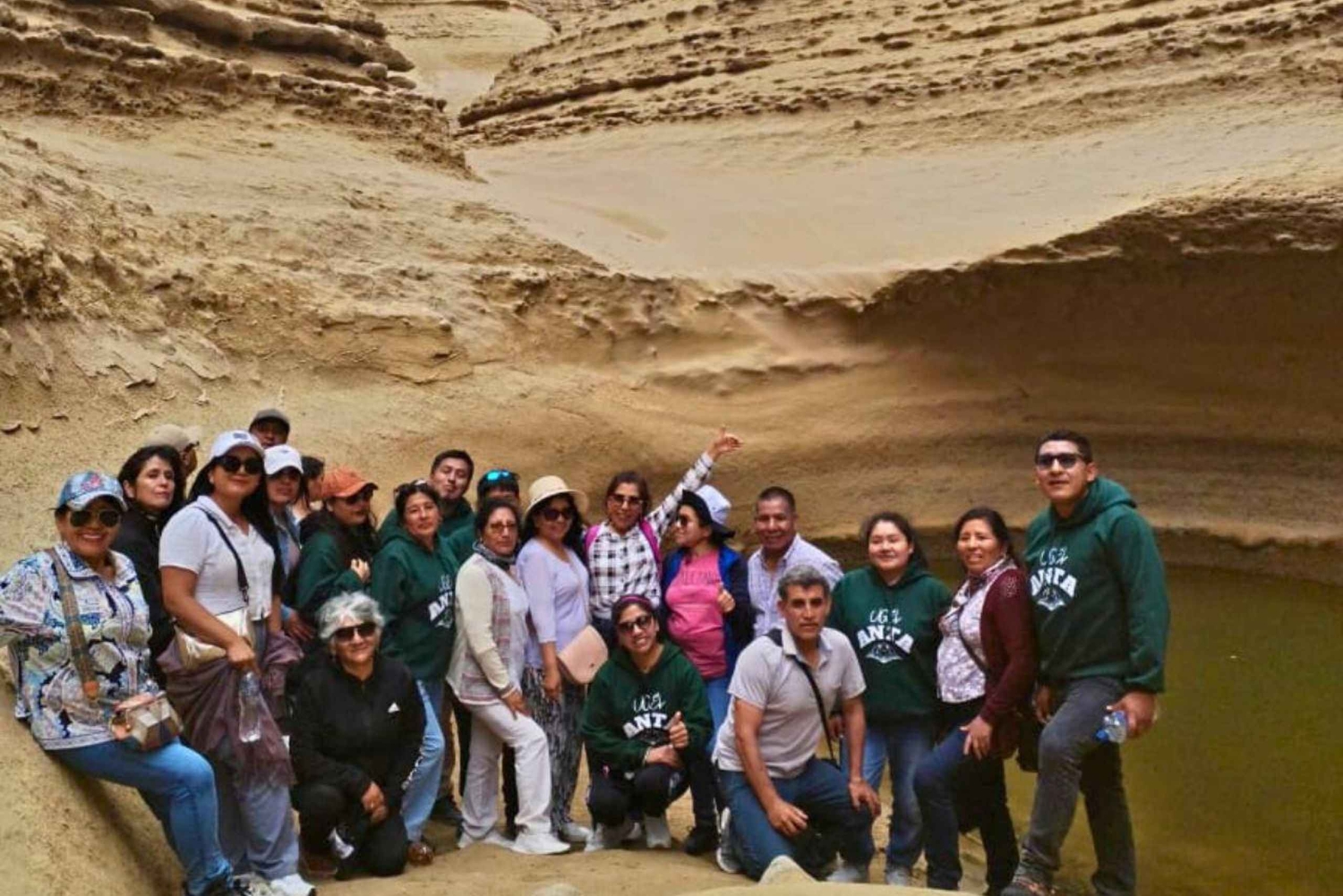 Enjoy a complete experience from the city of Ica, designed for travelers who want to make the most of their time. The tour starts with a pick-up from your accommodation and a transfer to the Cañón de los Perdidos, an impressive natural formation located in the Ocucaje Desert. During the visit, you'll take a guided hike to the main viewpoints and trails of the canyon, where you can admire geological formations, marine fossils, and unique desert landscapes.