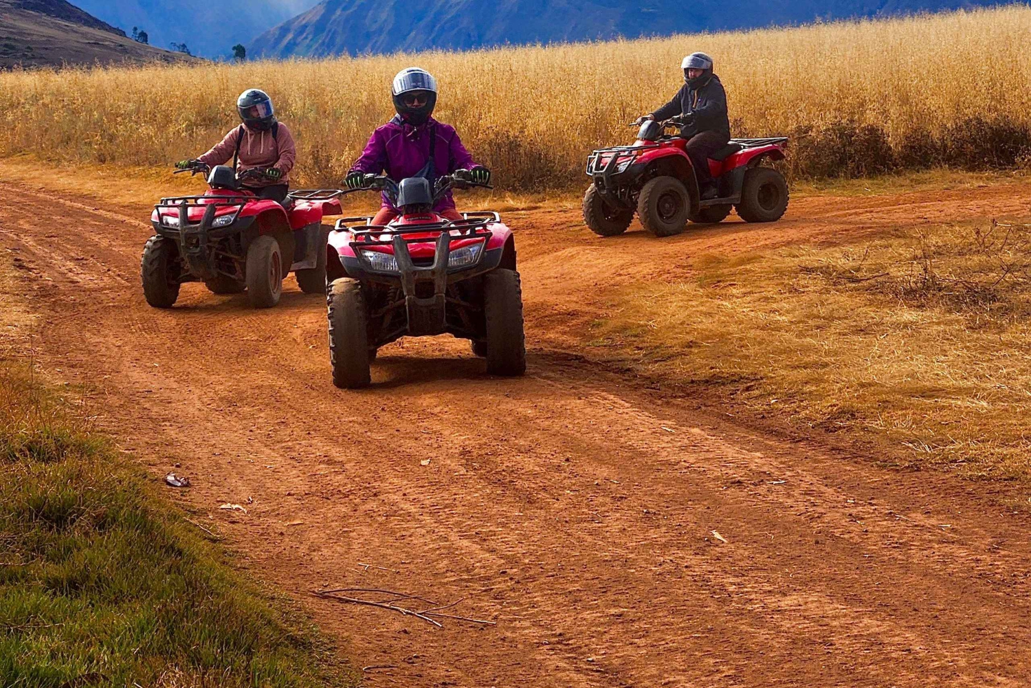 Jatka sitten ajoneuvolla noin 15 minuuttia Khua-Mahuaypampan mönkijäkeskukseen, jossa nelipyöräinen seikkailusi alkaa. Saat kattavan turvallisuusohjeistuksen ja ajoharjoituksen, minkä jälkeen varustat itsesi sertifioiduilla kypärillä, vedenpitävillä käsineillä ja sadeviitoilla märkäkauden aikana. Kun oppaasi ja avustajasi ovat mukanasi koko matkan ajan, tunnet olosi turvalliseksi ja tuetuksi ajaessasi luonnonkauniita maaseutureittejä pitkin peltojen, vuorten ja avaran taivaan ympäröimänä.