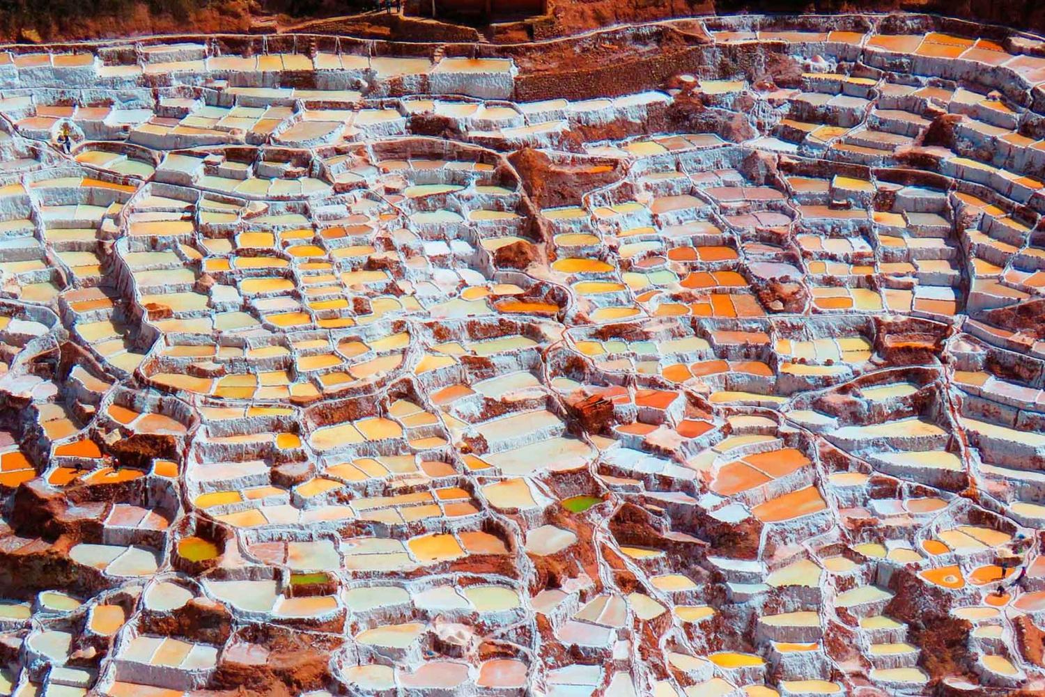 Tulemme noutamaan sinut hotellistasi noin klo 7 aamulla, sitten menemme Marasin hämmästyttäviin suolakaivoksiin, tämä paikka on ollut suolainen jo esi-inkaanien ajoista lähtien.