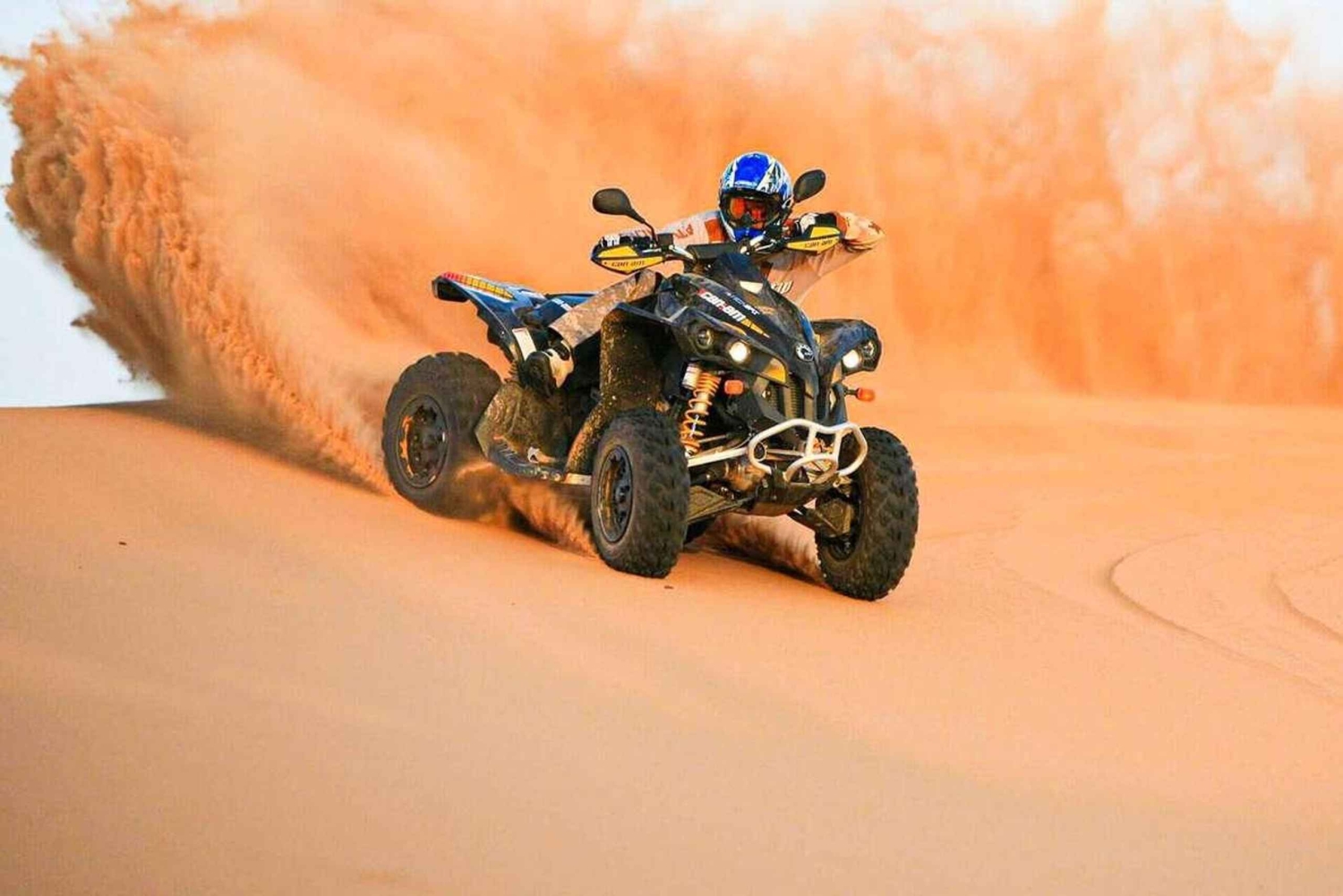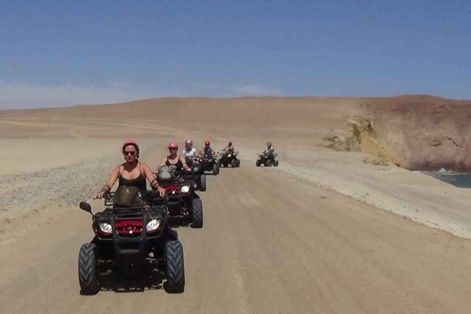 Matkareitti Tapaamme valitsemanasi ajankohtana Huacachinassa, joka on pieni kaupunki muutaman kilometrin päässä Ican keskustasta. Nousemme minibussiin ja suuntaamme autiomaahan, kunnes saavumme paikkaan, jossa quadit odottavat meitä. Ennen kuin nousemme quadien kyytiin, selitämme, miten näitä ajoneuvoja ajetaan, ja käymme läpi myös joitakin perusturvallisuussääntöjä, joita sinun on noudatettava koko toiminnan ajan. Käynnistämme moottorit ja alamme nauttia unohtumattomasta mönkijäretkestä Ican autiomaassa. Varausta tehdessäsi voit valita yhden tai kahden tunnin retken mieltymyksesi mukaan. Adrenaliini valtaa sinut, kun ajamme Ican autiomaan valtavien dyynien läpi. Lisäksi voit ottaa koko aktiviteetin ajan vaikuttavia valokuvia kuivasta maisemasta. Yhden tai kahden tunnin hauskanpidon jälkeen lopetamme mönkijäretken saapumalla lähtöpaikkaan.