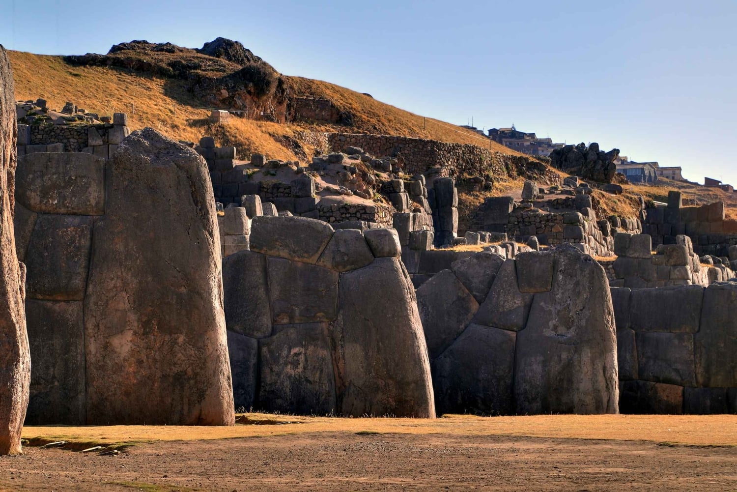 Vous pourrez ensuite vous rendre en voiture à la périphérie nord de Cusco pour visiter le spectaculaire complexe inca de Sacsayhuaman. Passez par les ouvertures des immenses murs incas, construits avec des rochers massifs pesant jusqu'à 180 tonnes et ajustés avec une perfection absolue. Continuez vers un autre site inca important, connu sous le nom de Qenqo (zigzag). Ce lieu très inhabituel possède des passages souterrains cachés dans son intérieur en pierre parfaitement sculptée. Il est probable que les Incas y momifiaient leurs morts. Visitez les bains incas de Tambomachay et le point de vue militaire de Puka Pukara. Retour en voiture au centre-ville de Cusco, où se termine votre excursion.