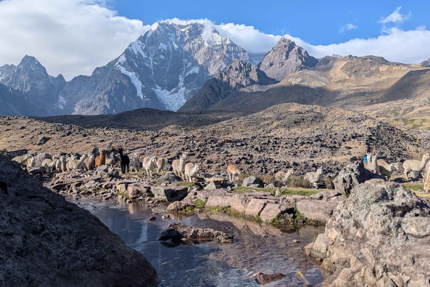 Nous entreprendrons une randonnée au cœur de la cordillère des Andes afin d'explorer les sept superbes lagons d'Ausangate, avec des vues imprenables sur la majestueuse montagne d'Ausangate au loin. Le premier lagon se trouve à environ 5 ou 6 kilomètres et il faut compter environ une heure et demie pour l'atteindre.