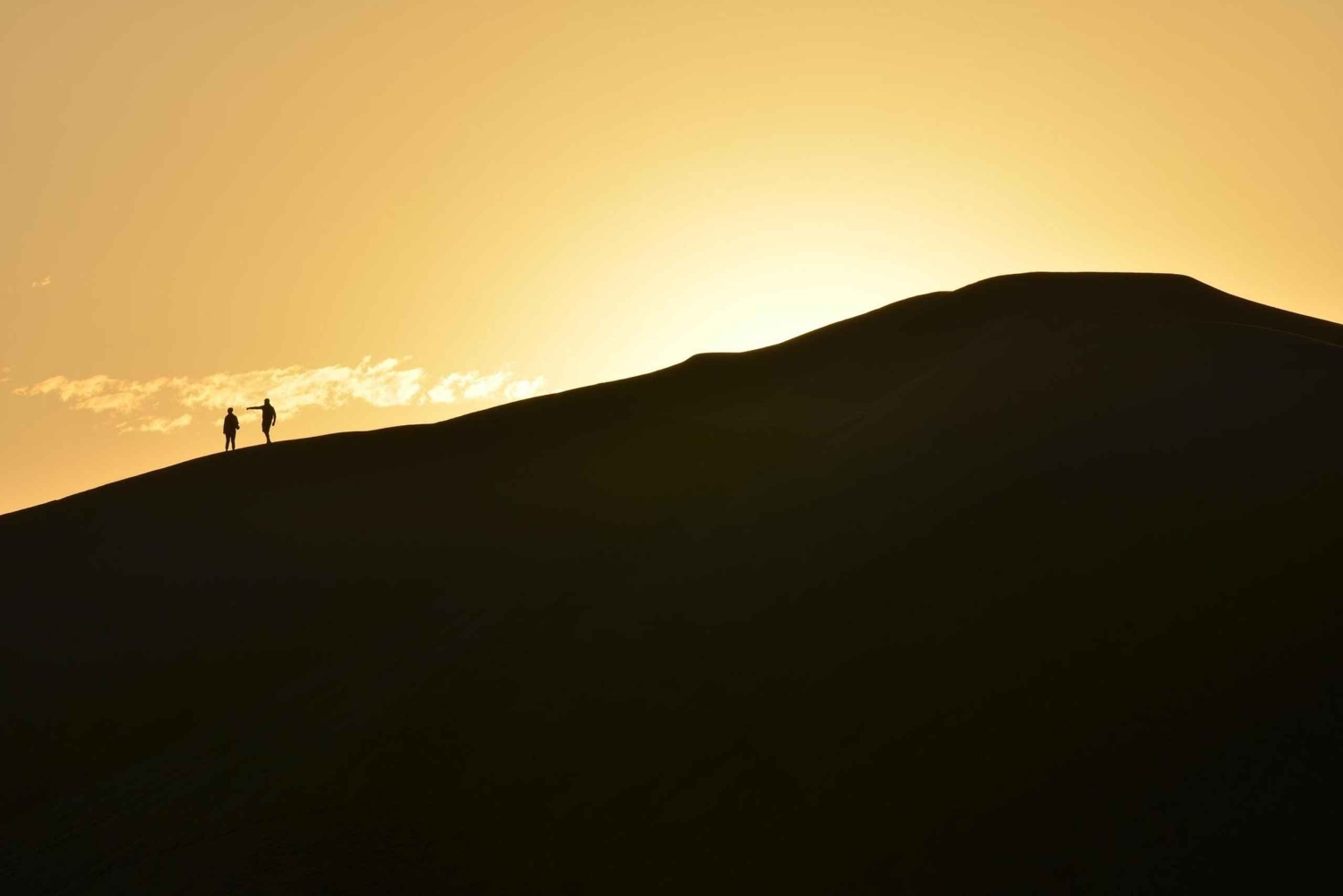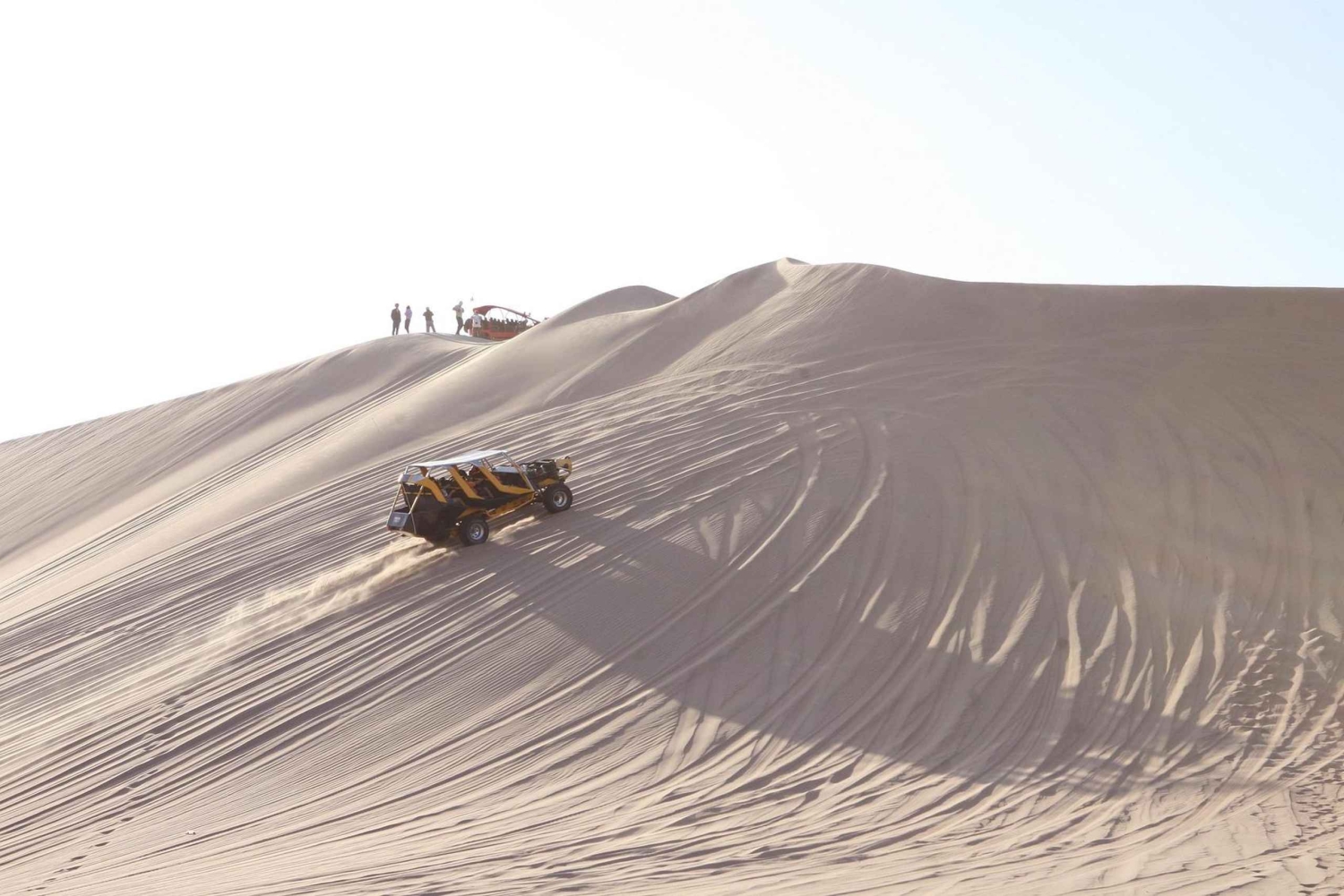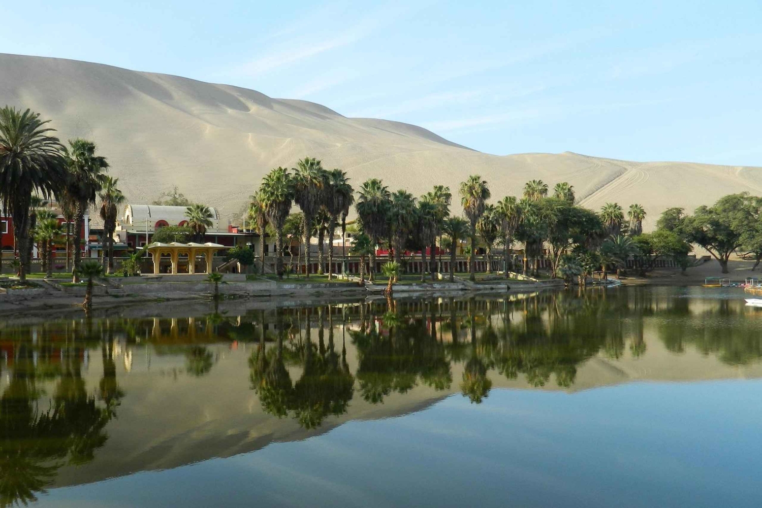 Vous commencerez la journée en vous rendant à Paracas pour embarquer sur un bateau et naviguer vers les îles Ballestas, où vous observerez des lions de mer, des oiseaux guaneras et le mystérieux Candélabre gravé dans le sable. Vous poursuivrez ensuite votre route vers Ica pour découvrir l'oasis de Huacachina, entourée de hautes dunes, où vous pourrez vous promener, prendre des photos et ressentir l'énergie du désert. Plus tard, vous visiterez l'Hacienda Caravedo, la plus ancienne distillerie de pisco d'Amérique, où vous découvrirez son histoire et son processus d'élaboration. Pour clore l'expérience, vous vous aventurerez dans le désert pour profiter d'un coucher de soleil spectaculaire, avec des vues dorées, une tranquillité absolue et une atmosphère parfaite pour vous détendre et vous connecter avec le paysage.