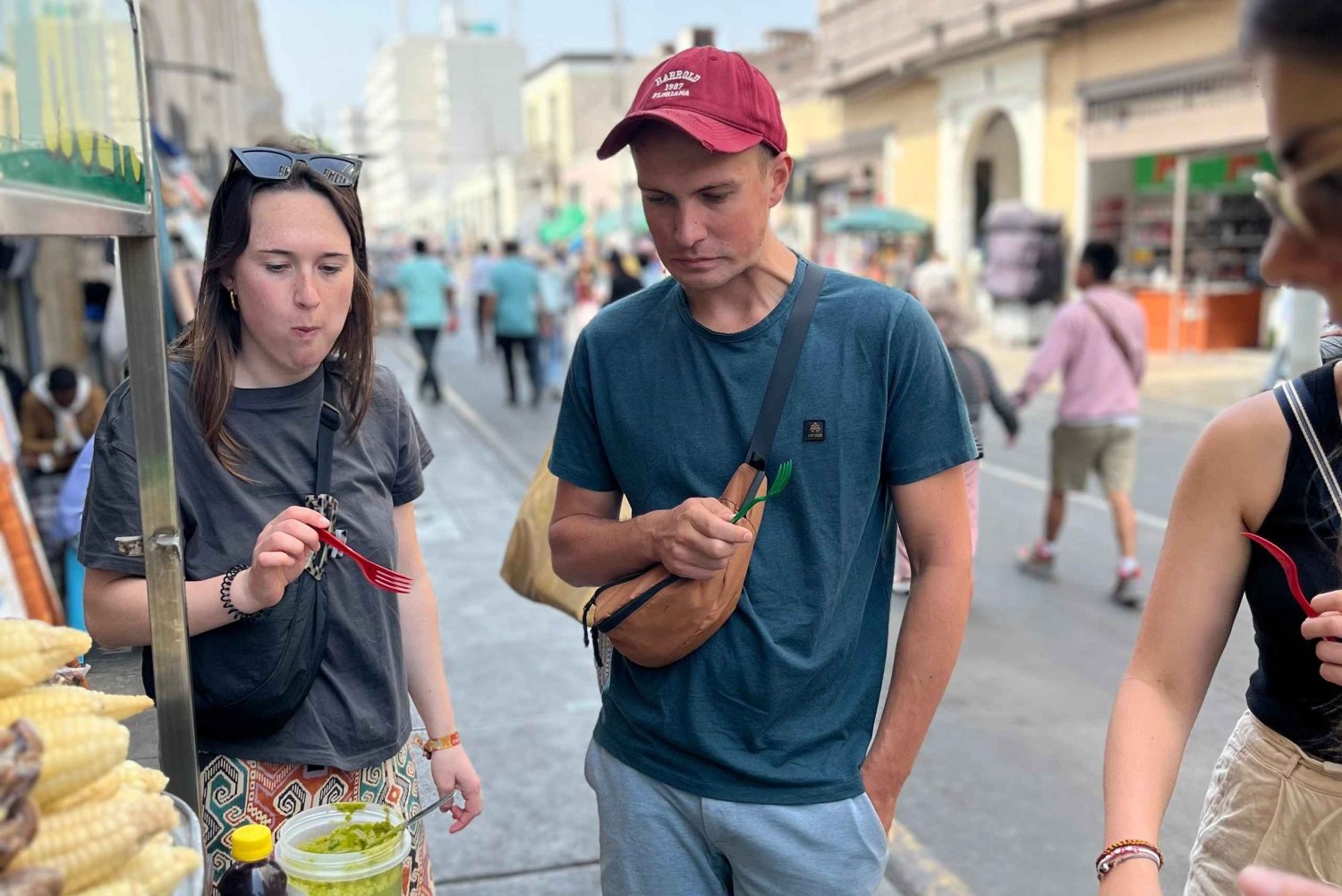 Vivi Lima come un vero abitante del posto durante il nostro tour gastronomico attraverso le vivaci strade di Lima, dove potrai assaporare il ceviche più fresco, gustare churros croccanti e deliziarti con diversi frutti tropicali ricchi di sapore. Sperimenta l'eclettica fusione di culture esplorando Chinatown, assaggiando stuzzicanti snack di ispirazione cinese nel cuore della vivace energia della città. E per finire, immergiti nel mondo degli alcolici peruviani con una degustazione di pisco, per completare questa indimenticabile avventura culinaria nel cuore di Lima.