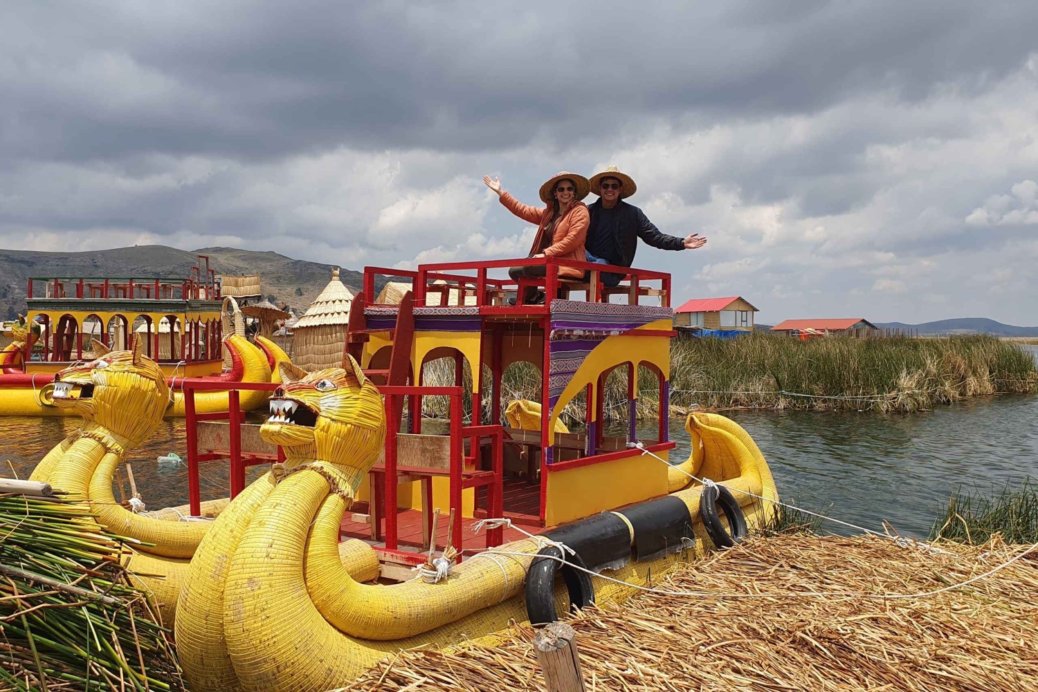 Scopri un eccellente tour che ti porterà alle affascinanti isole Uros e Taquile, con una comoda sosta alle storiche rovine di Sillustani. Approfitta dei vantaggi di un tour in motoscafo che ti permetterà di avere più tempo per esplorare queste meravigliose attrazioni.