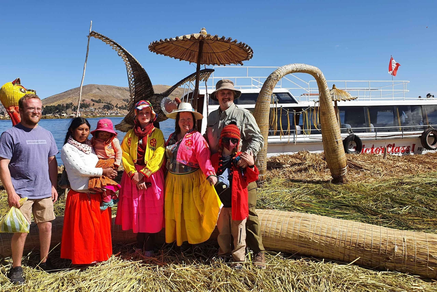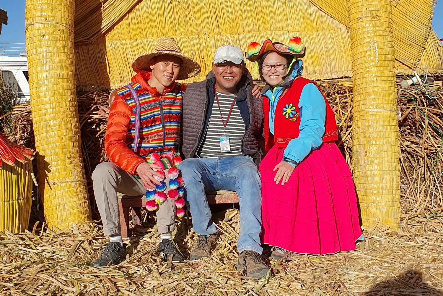 La giornata inizia con un servizio di prelievo in hotel alle 7 del mattino, seguito da un trasferimento al porto di Puno. Lì salirai a bordo di una barca veloce che ti trasporterà rapidamente alle straordinarie isole galleggianti Uros. Accompagnato da una guida esperta che parla correntemente lo spagnolo e l'inglese, potrai conoscere da vicino la vita degli abitanti di queste straordinarie isole.