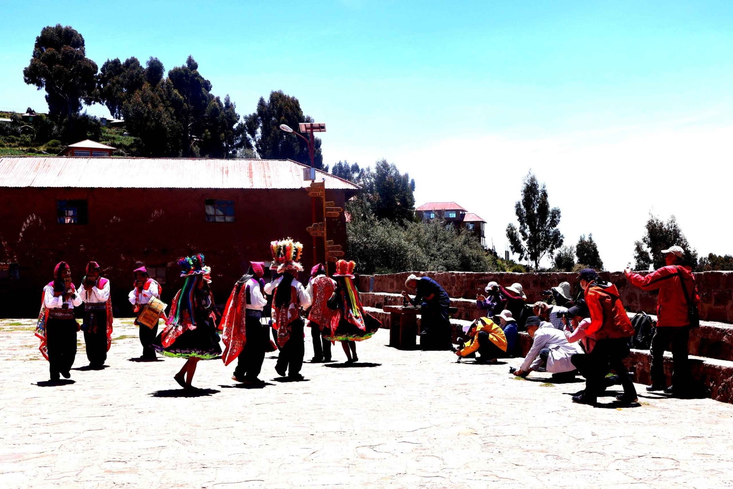 Più tardi, riunisciti nella piazza d'armi per approfondire le vibranti tradizioni e il patrimonio dei Taquileños. Assisti al loro straordinario artigianato tessile, che ti offre uno sguardo sul loro stile di vita. Verso le 14:30 torna alla barca e salpa verso Puno, dove arriverai alle 16:00 circa.