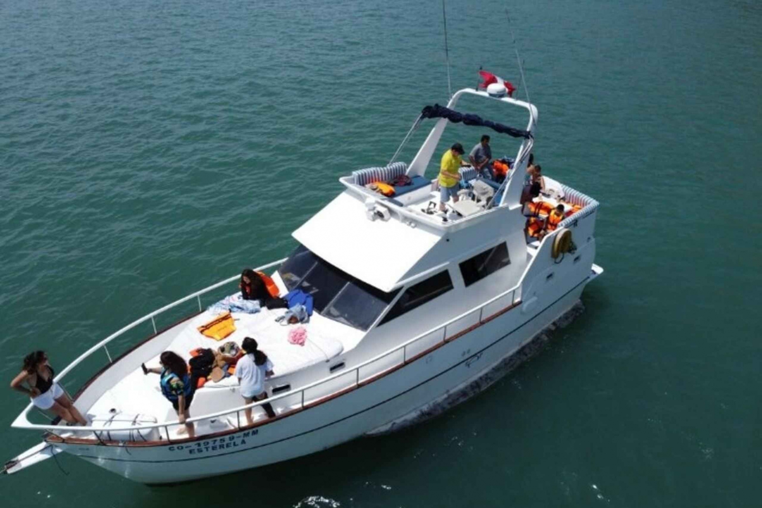 Naviga in yacht nell'Oceano Pacifico, in un tour esclusivo di 3,5-4 ore alle Isole Palomino, scopri le Isole del Callao e la loro vita marina, pinguini, uccelli e nuota insieme a migliaia di leoni marini.