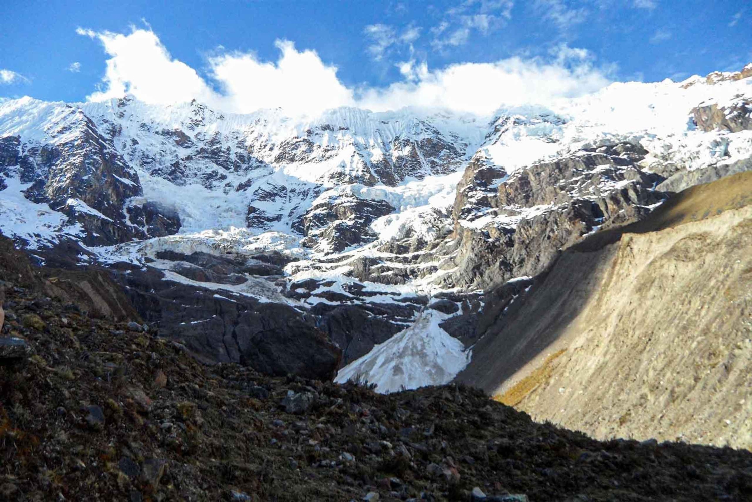 - 壮大なサルカンタイ氷河沿いのトレッキング
