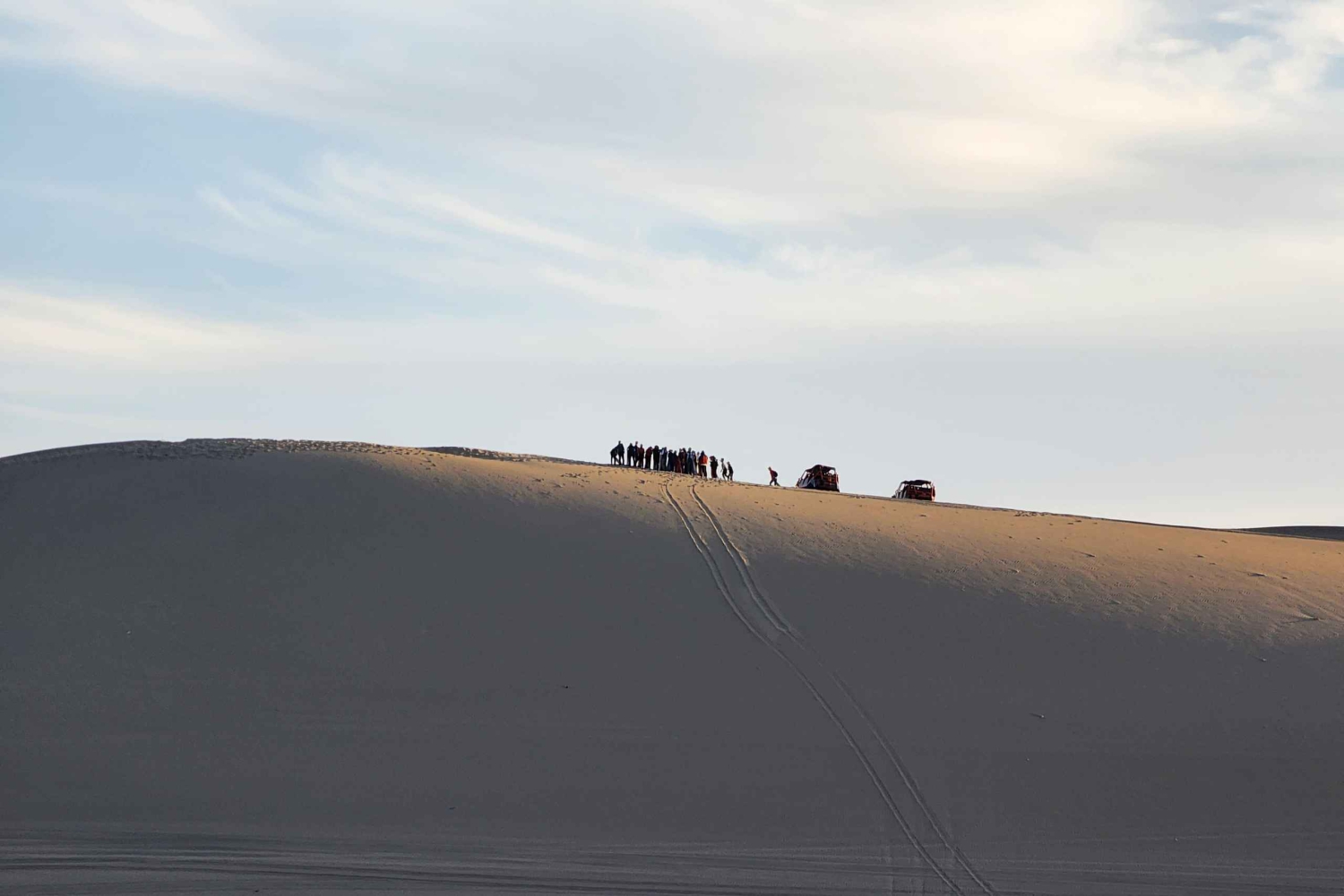 午後には、砂漠のオアシス、ワカチナへ向かい、アドレナリン全開の冒険をお楽しみください。砂丘のバギーに乗って、そびえ立つ砂丘をスリル満点に駆け抜け、その後、斜面をサンドボードで滑り降りてください。出発時間を遅く選択された方は、砂漠に沈む夕日が景色全体を金色に染める壮大な光景をご覧いただけます。