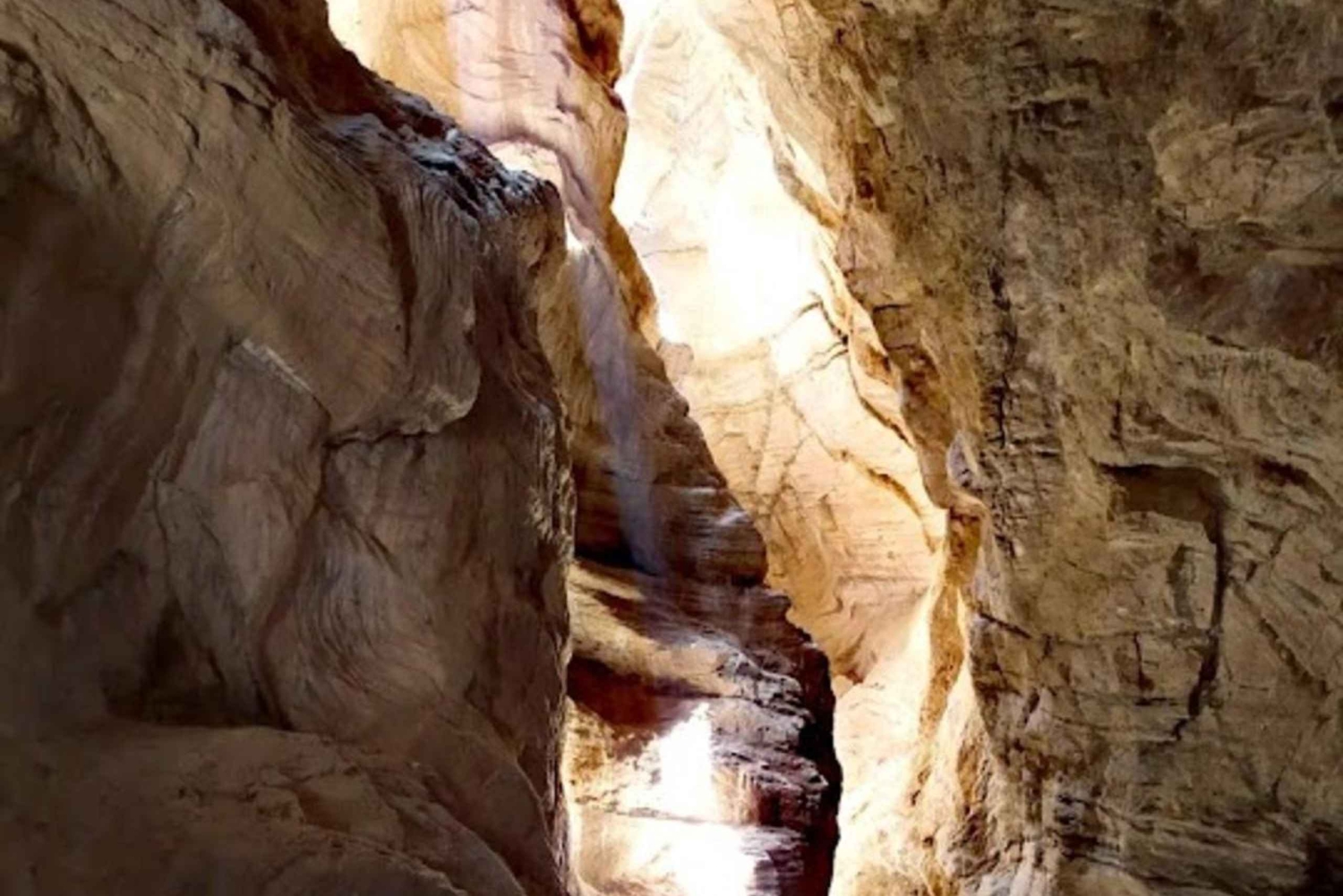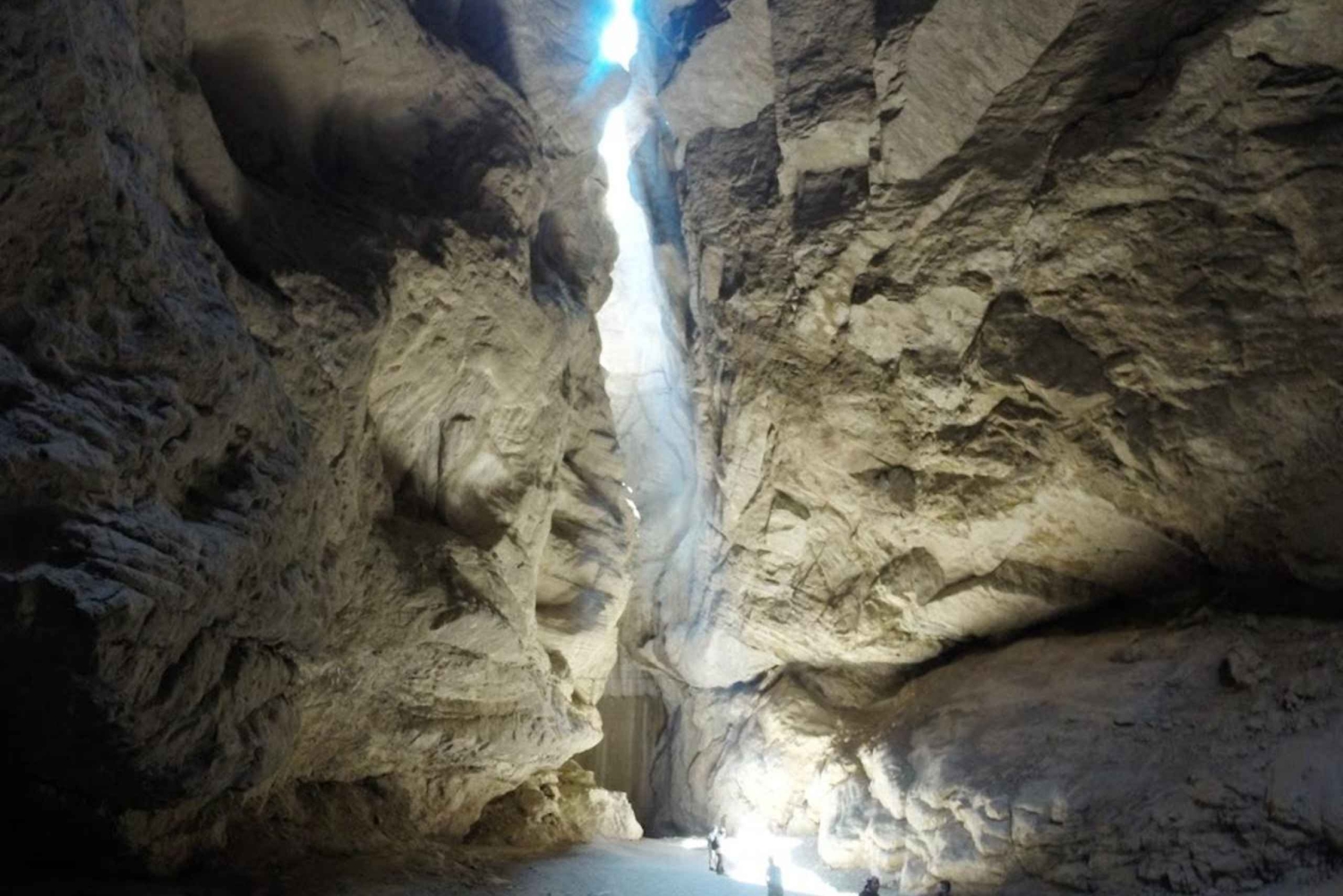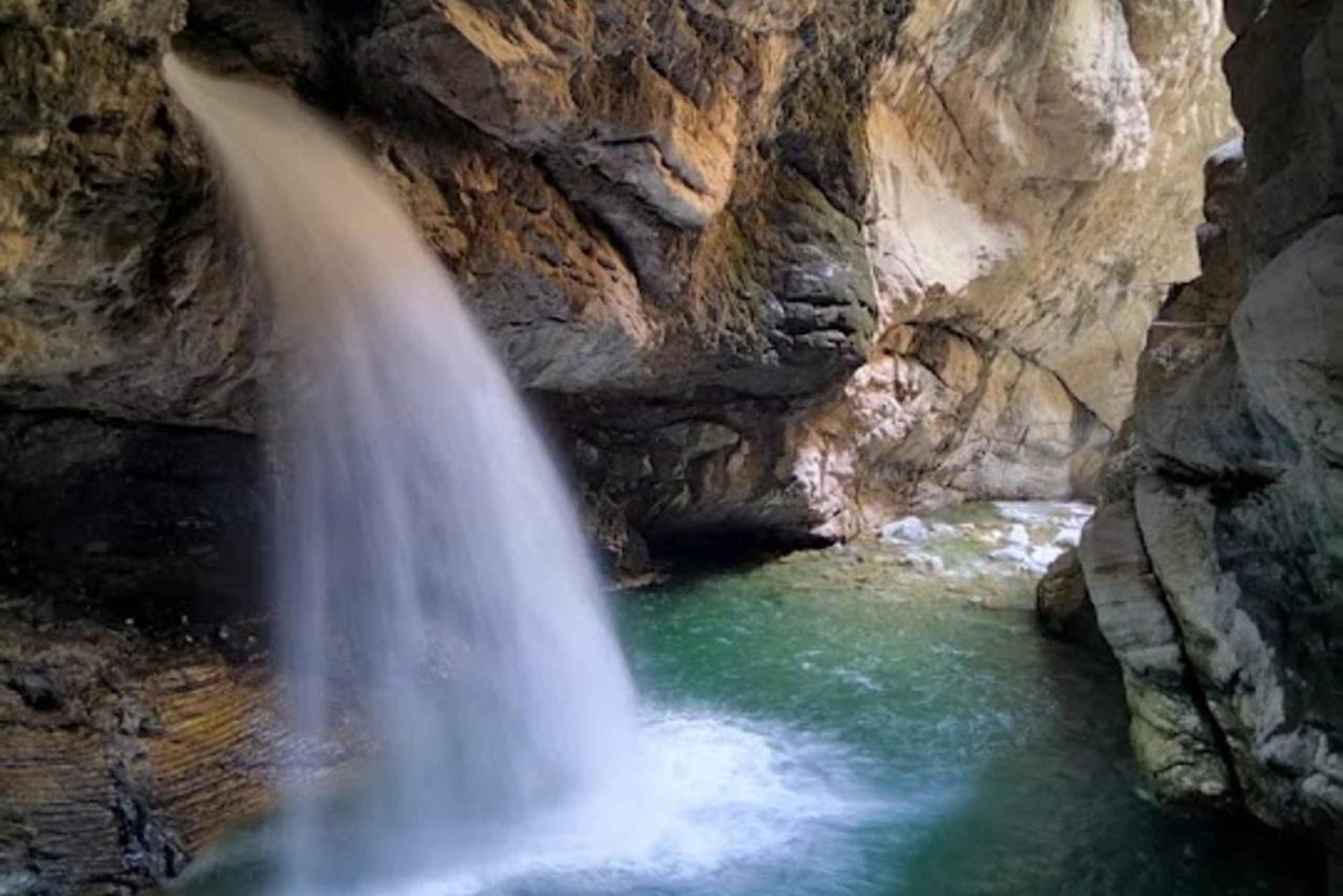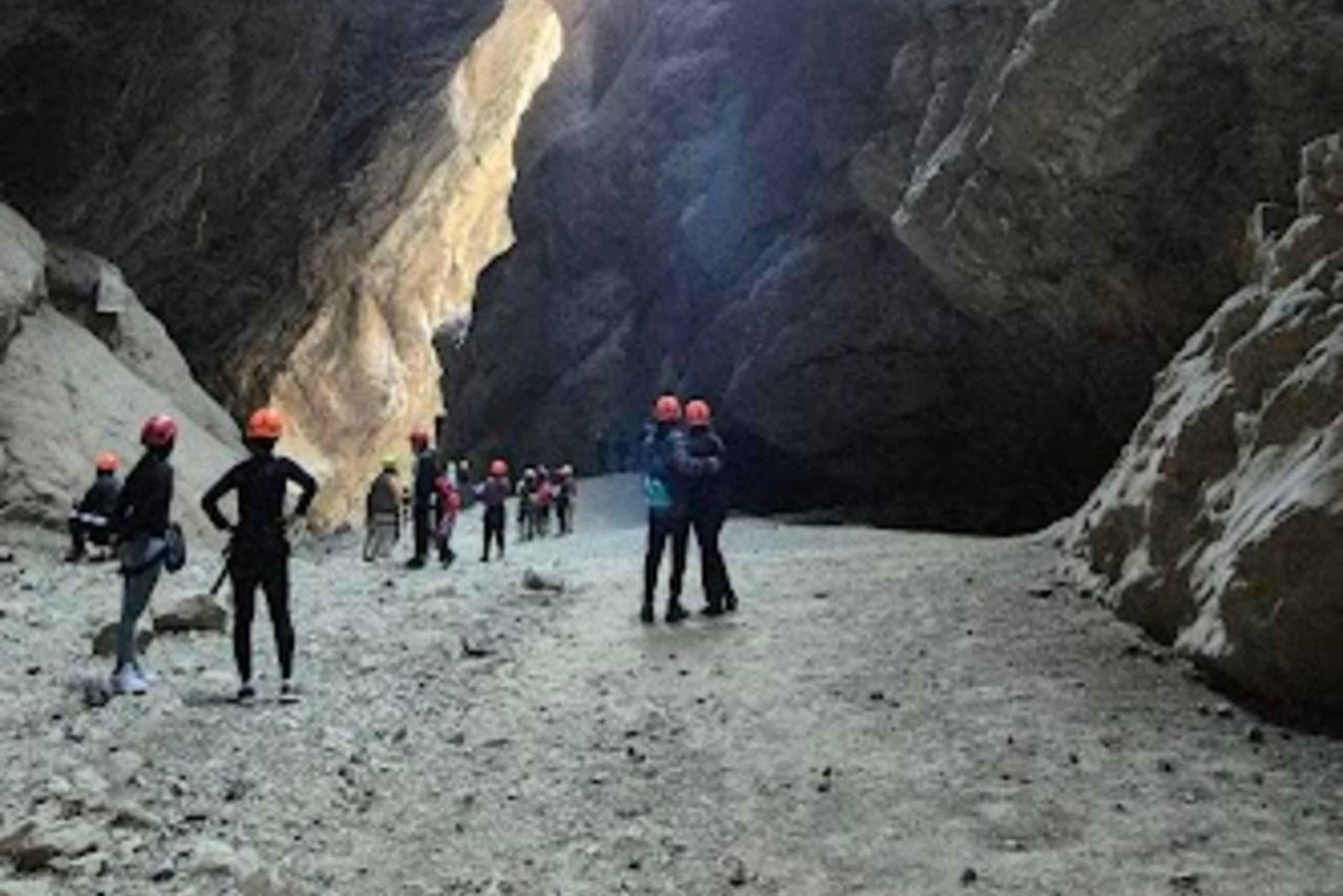 アウティシャ渓谷への 1 日ツアーで、忘れられない冒険をお楽しみください。この地域で最も印象的な峡谷の 1 つで、高さ 30 メートルの懸垂下降というエキサイティングな練習から 1 日を始めましょう。壮大な景色に囲まれながら岩壁を下りていくと、アドレナリンがあなたを新たな高みへ連れて行きます。
