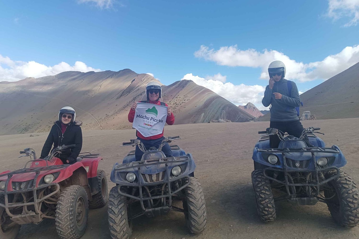その後、安全説明を受けて、その日の最もエキサイティングな部分である四輪バイクのコースを開始します。雪山、渓谷、小さなアンデスのコミュニティに囲まれたトレイルを横断し、ペルーで最も印象的な景色の中を走るアドレナリンを感じていただけます。四輪バイクのツアーは、カラフルマウンテンへのトレイルの出発点に到着するまで約1時間かかります。