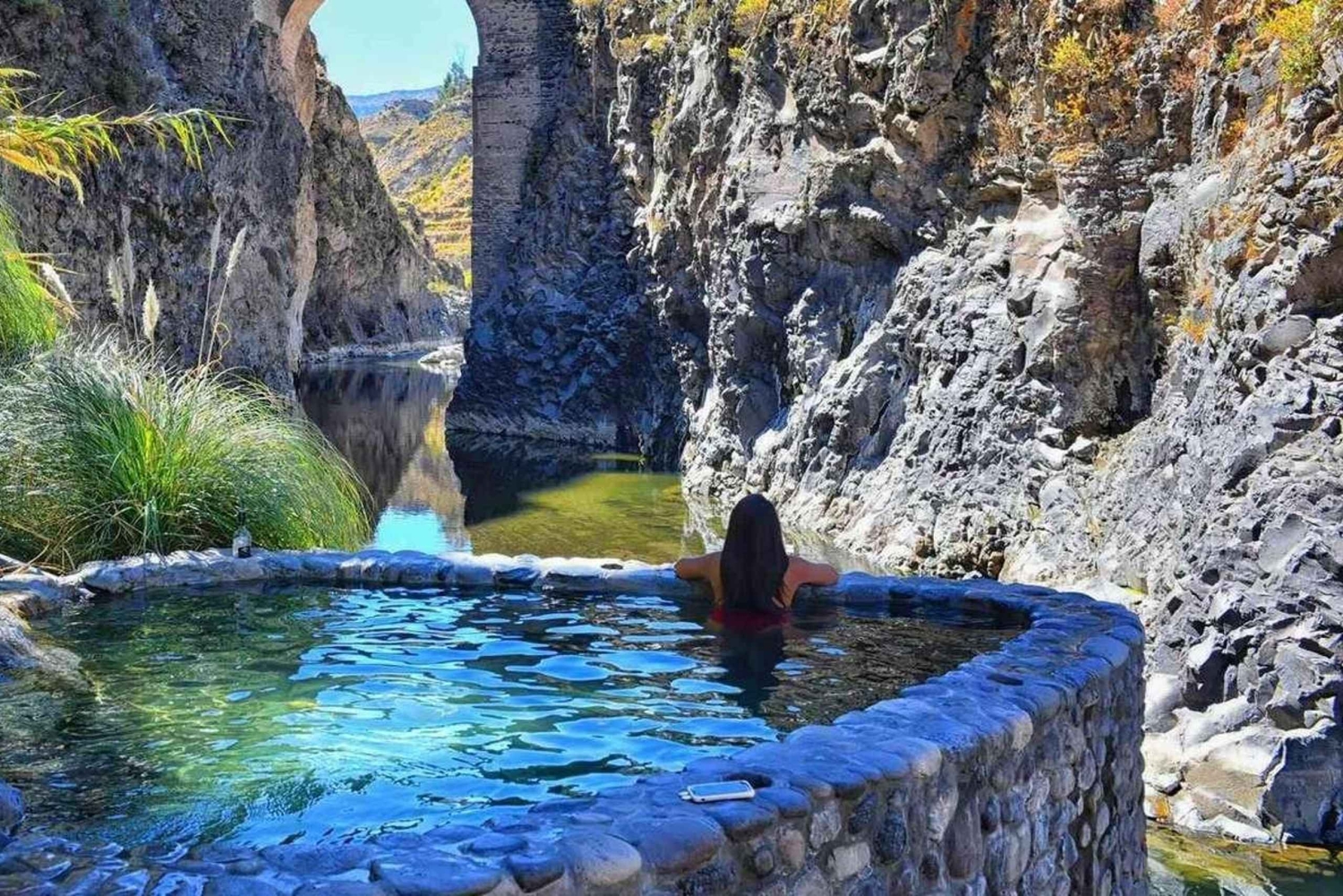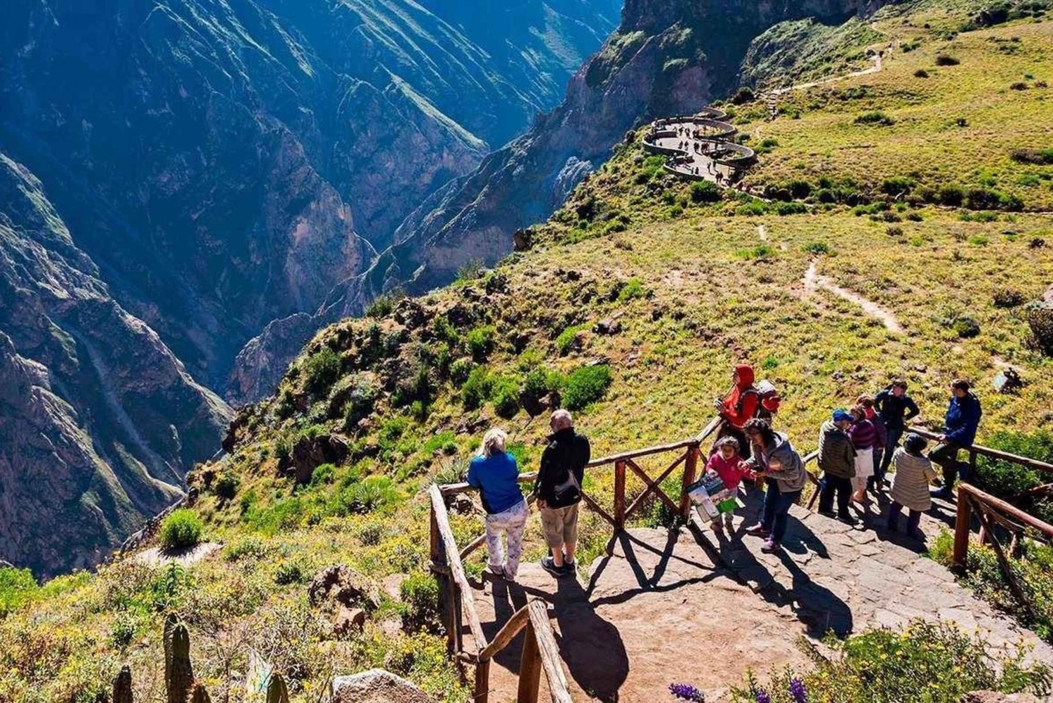 De tour begint met een ophaalservice vanaf je hotel om 3:15 uur. Na een reis van 3 uur komen we aan in de stad Chivay, waar we genieten van een heerlijk ontbijt dat typisch is voor dit gebied. Daarna gaan we naar het Cruz del Condor uitkijkpunt, waar we de Colca Canyon kunnen bewonderen en de vlucht van condors kunnen zien, die een overheersende soort zijn in het luchtruim van dit Andesgebied. We vervolgen onze route richting de Wayrapunko of Antahuilque uitzichtpunten. Om ongeveer 11:30 uur gaan we naar de thermale baden van Chacapi, waar je kunt genieten van het geneeskrachtige water. Daarna keren we terug naar de stad Chivay waar je tijd hebt om op eigen gelegenheid te lunchen. Tot slot ontmoeten we elkaar en gaan we naar de stad Puno om deze excursie af te sluiten. Tijdens deze tour zullen we enkele stops maken, zoals het Salinas en Lagunillas Reservaat om enkele kameelachtigen en vogels te zien die in het gebied leven. Deze tour eindigt bij de terminal van Puno.Includes