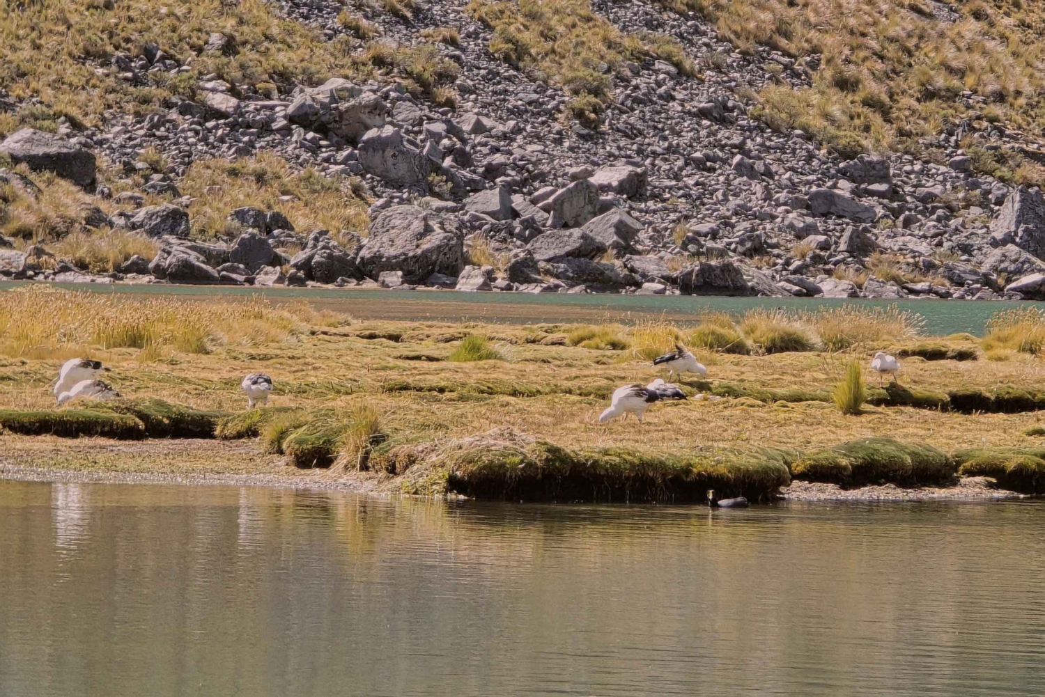 We blijven elk van de meren verkennen, allemaal uniek in kleur en vorm, terwijl je gids culturele verhalen, oude Andes-legendes en de geschiedenis van de bewakers die dit heilige land beschermen, deelt.