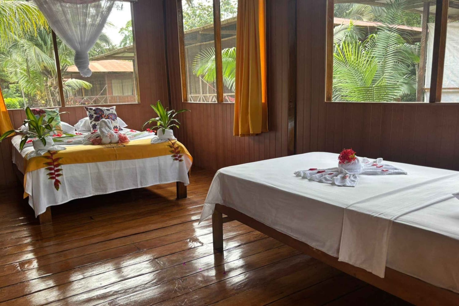 Transfer naar de haven waar we de boot voor een uur naar onze lodge zullen brengen. Welkomstbijeenkomst met een verfrissend fruitsapje uit onze streek. Installatie in onze respectievelijke kamers.