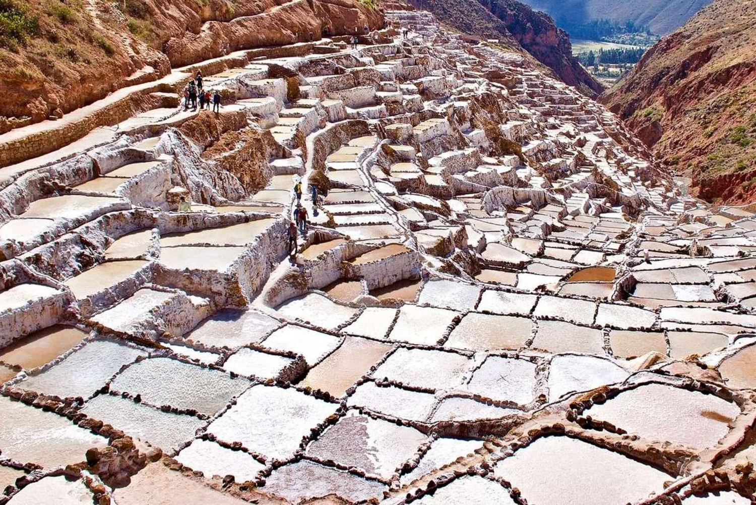 Ga vervolgens naar de zoutmijnen van Maras. Bekijk de 2000 zoutbassins die nog steeds door lokale families worden gebruikt om zout te winnen. Leer meer over de geschiedenis van de mijnen en de traditionele methoden die werden gebruikt om het zout te winnen.